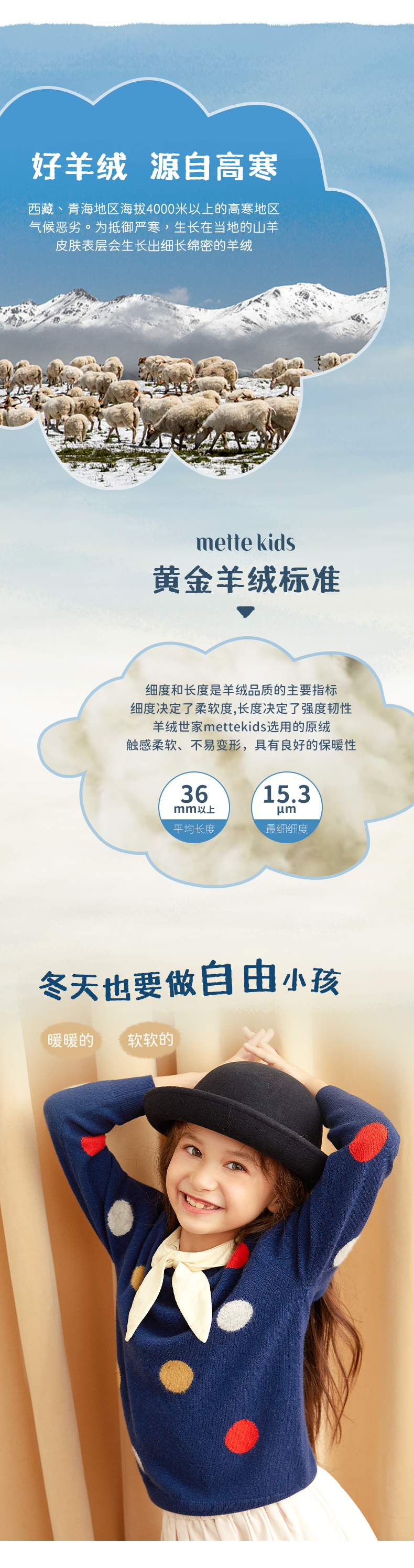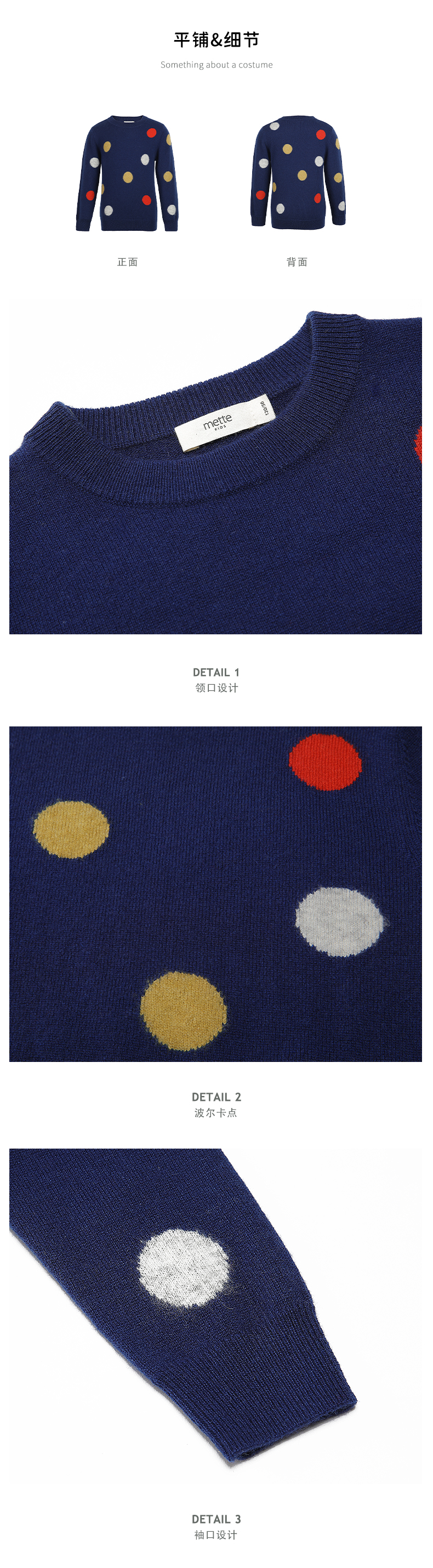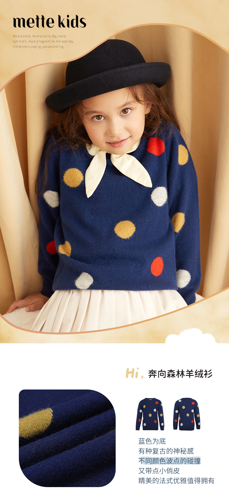 【可爱圆点童装羊绒衫】童装中大童100%山羊绒衫时尚圆点装饰内搭女保暖毛衣