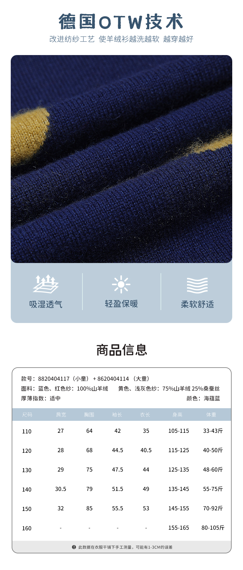 | 参考身高: 110/52 120/56 130/60 140/64 150/68 | 适用季节: 春秋 |