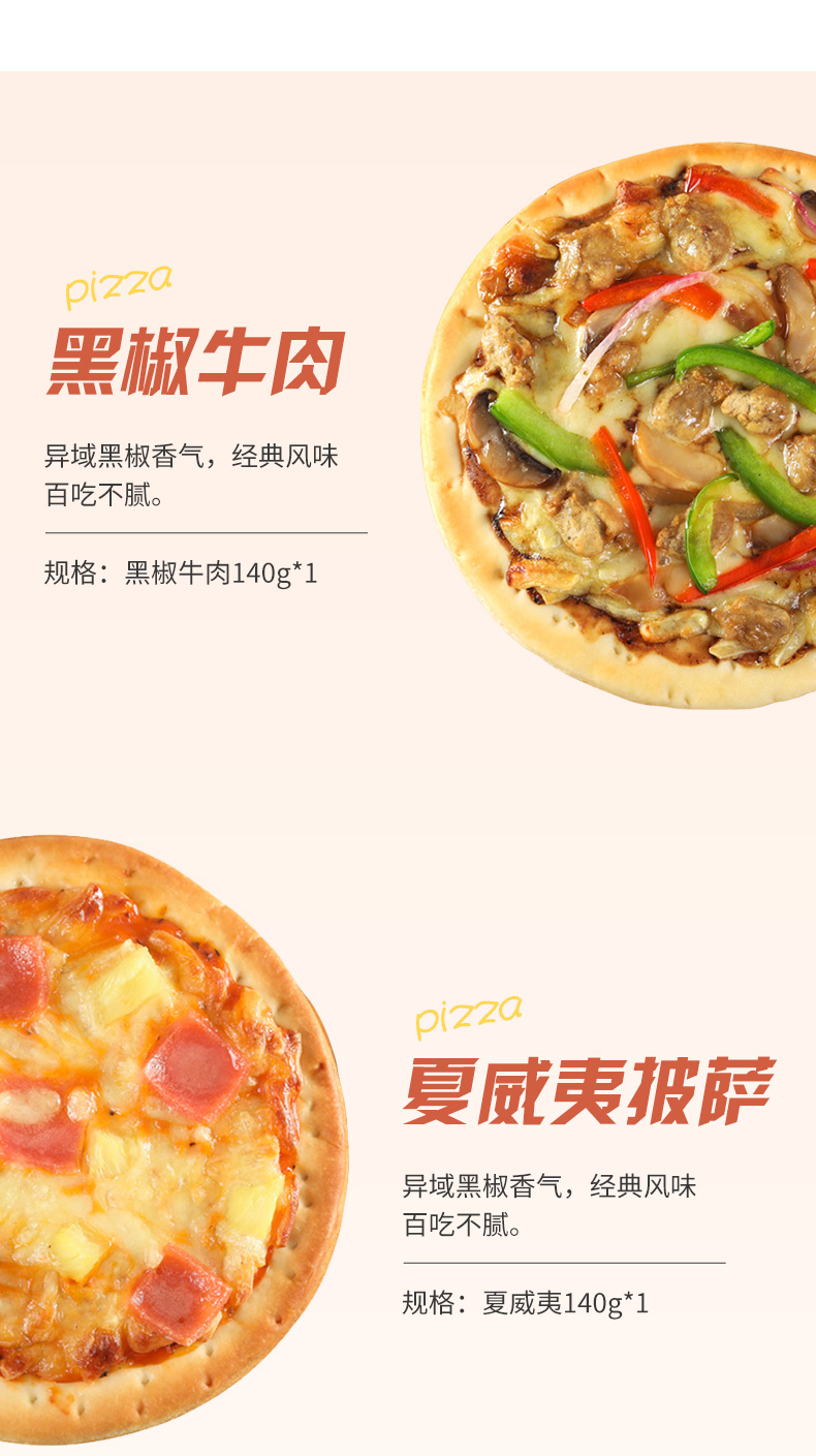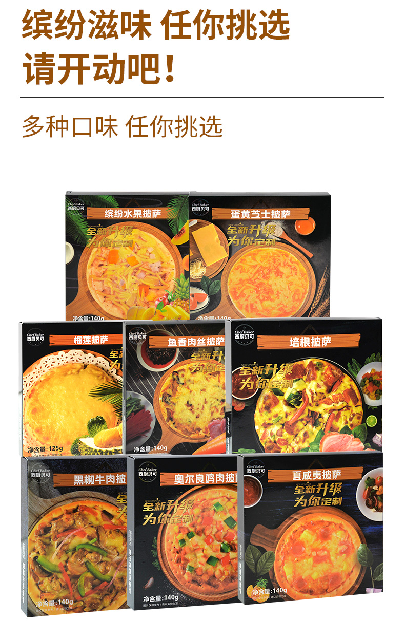 西厨贝可披萨5盒 黑椒牛肉+奥尔良鸡肉+培根+夏威夷+水果 加热半成品食材