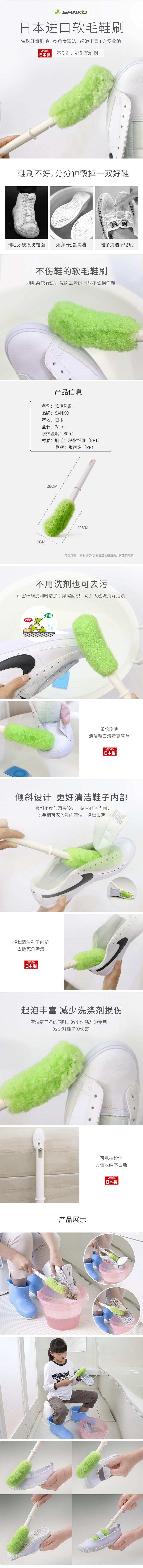 日本进口软毛鞋刷SANKO鞋刷家用清洁多功能不伤鞋免洗剂运动鞋刷 WHJC