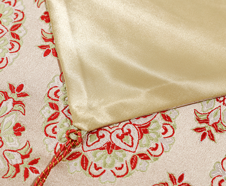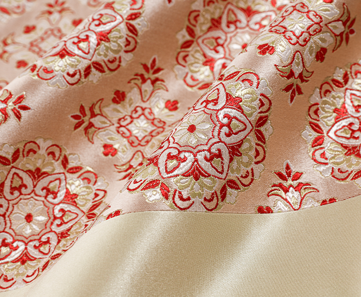 主料为织锦缎,花纹精致,质地紧密厚实。