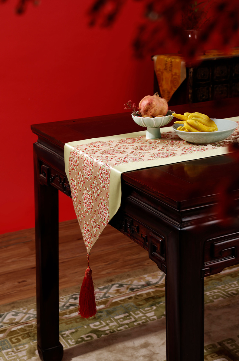 桌旗两端为三角形造型,简洁大方,易于搭配。