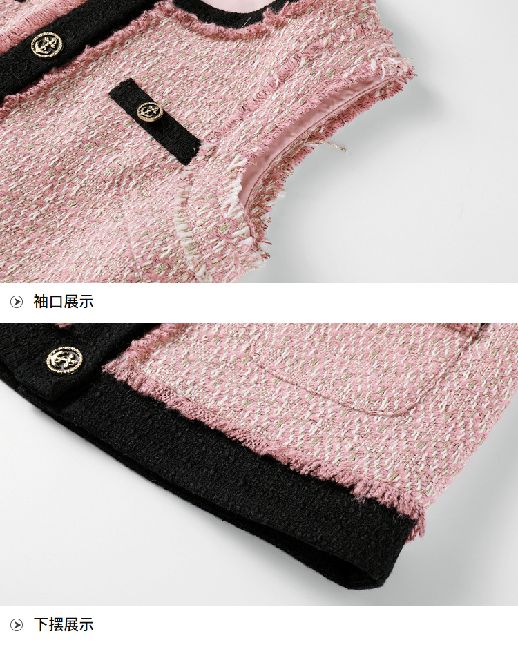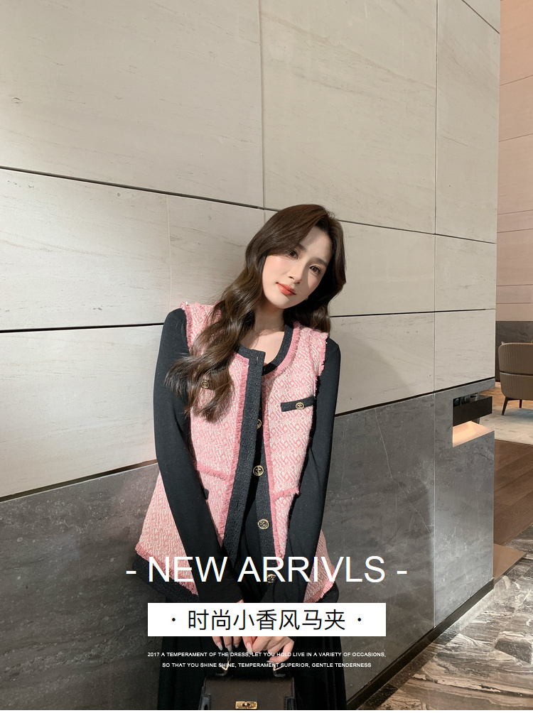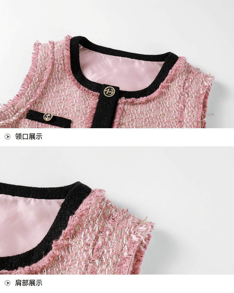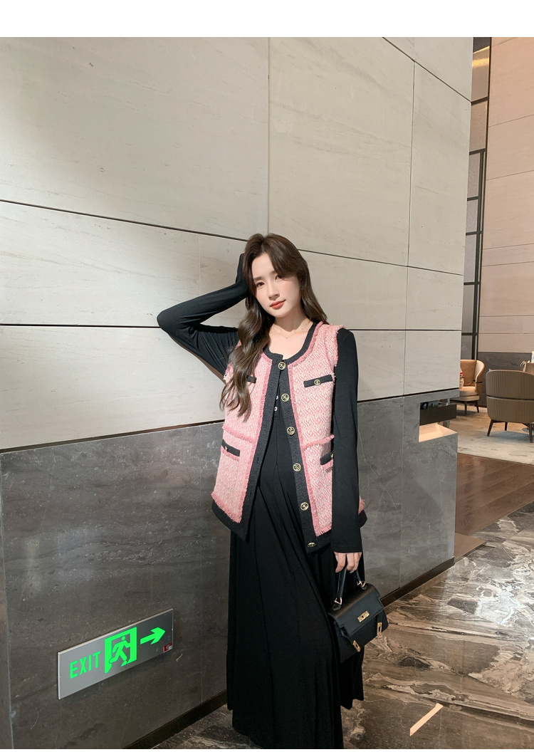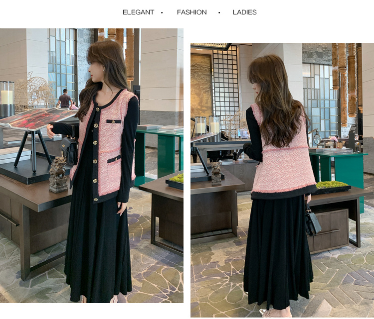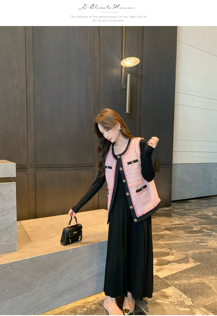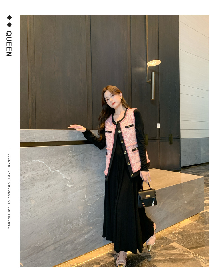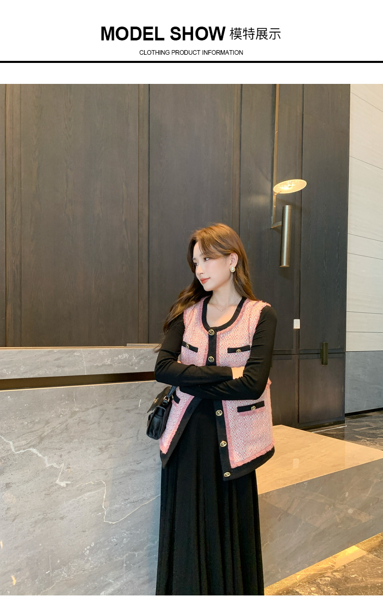 奢姿2024秋季新款大码女装胖妹妹减龄撞色马夹针织连衣裙穿搭套装9943390196