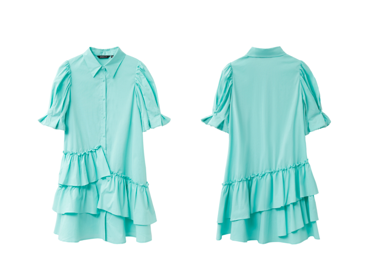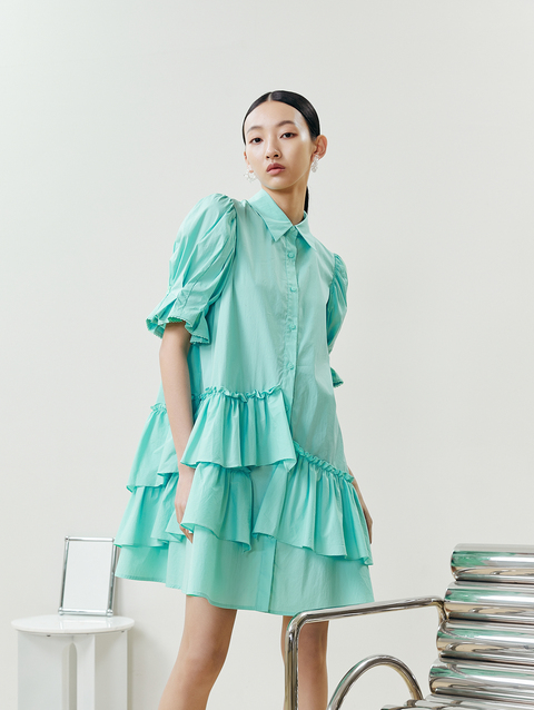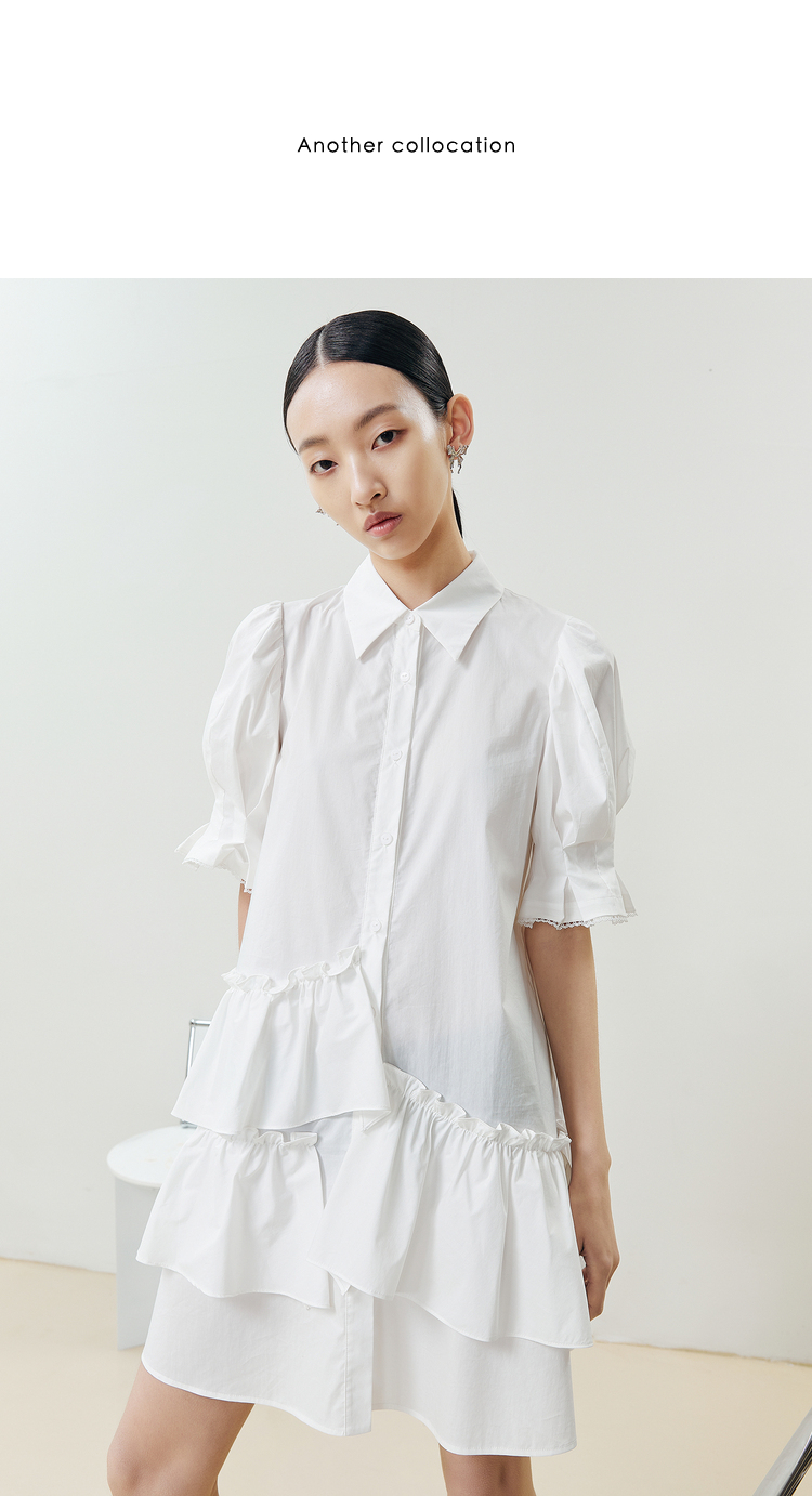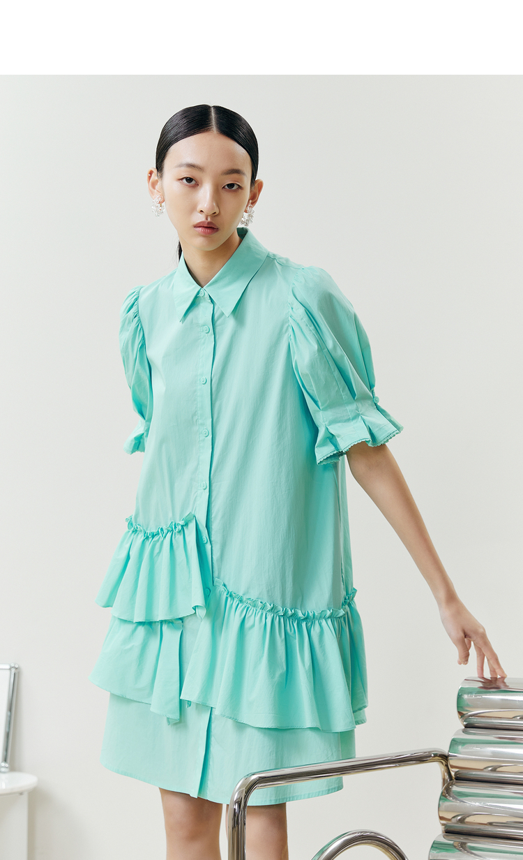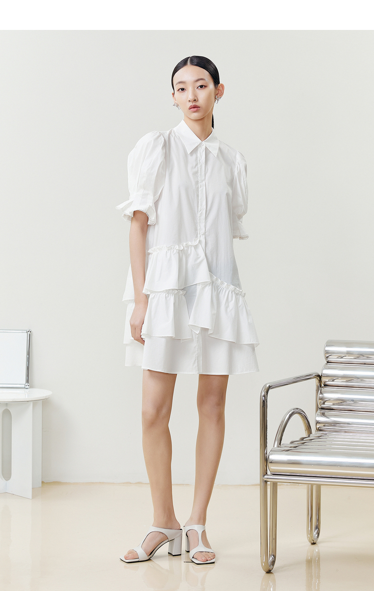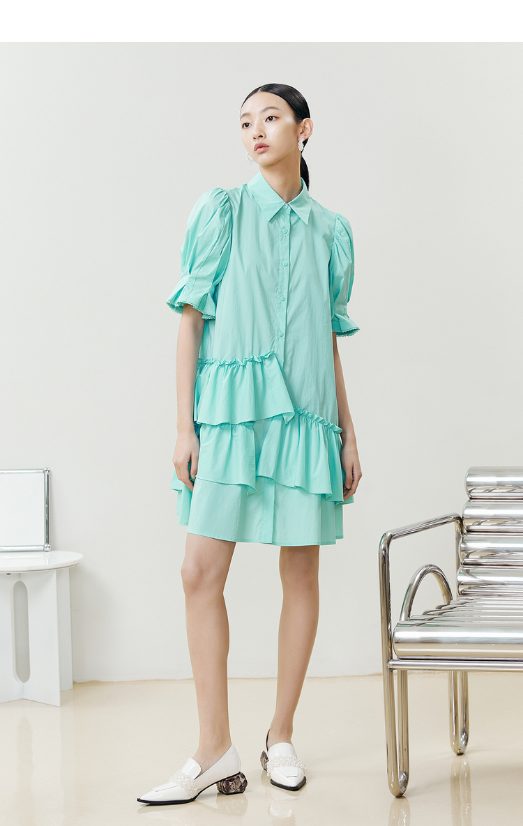 NEELLY纳俪商场同款设计感连衣裙女夏季不规则下摆泡泡袖娃娃裙N22041Y01017