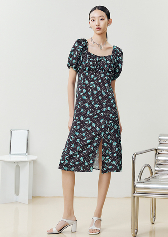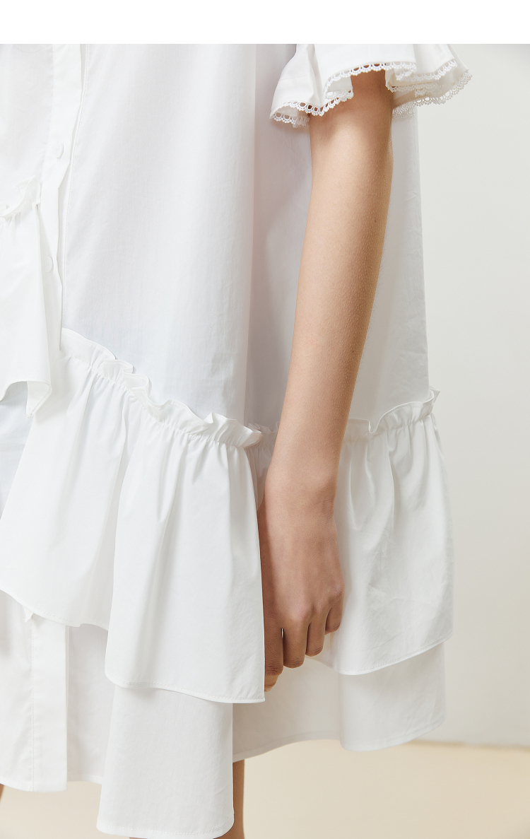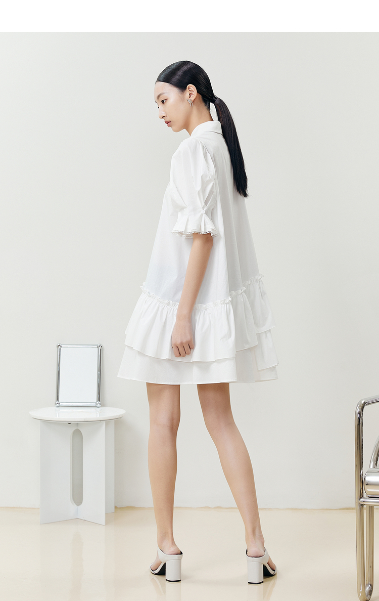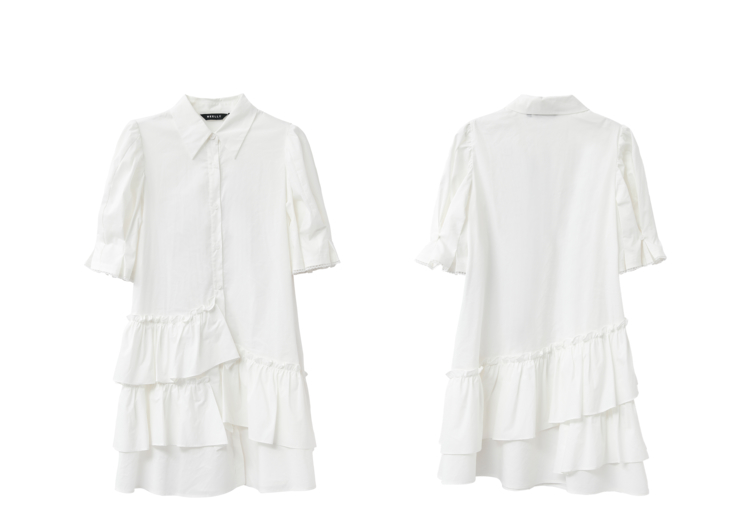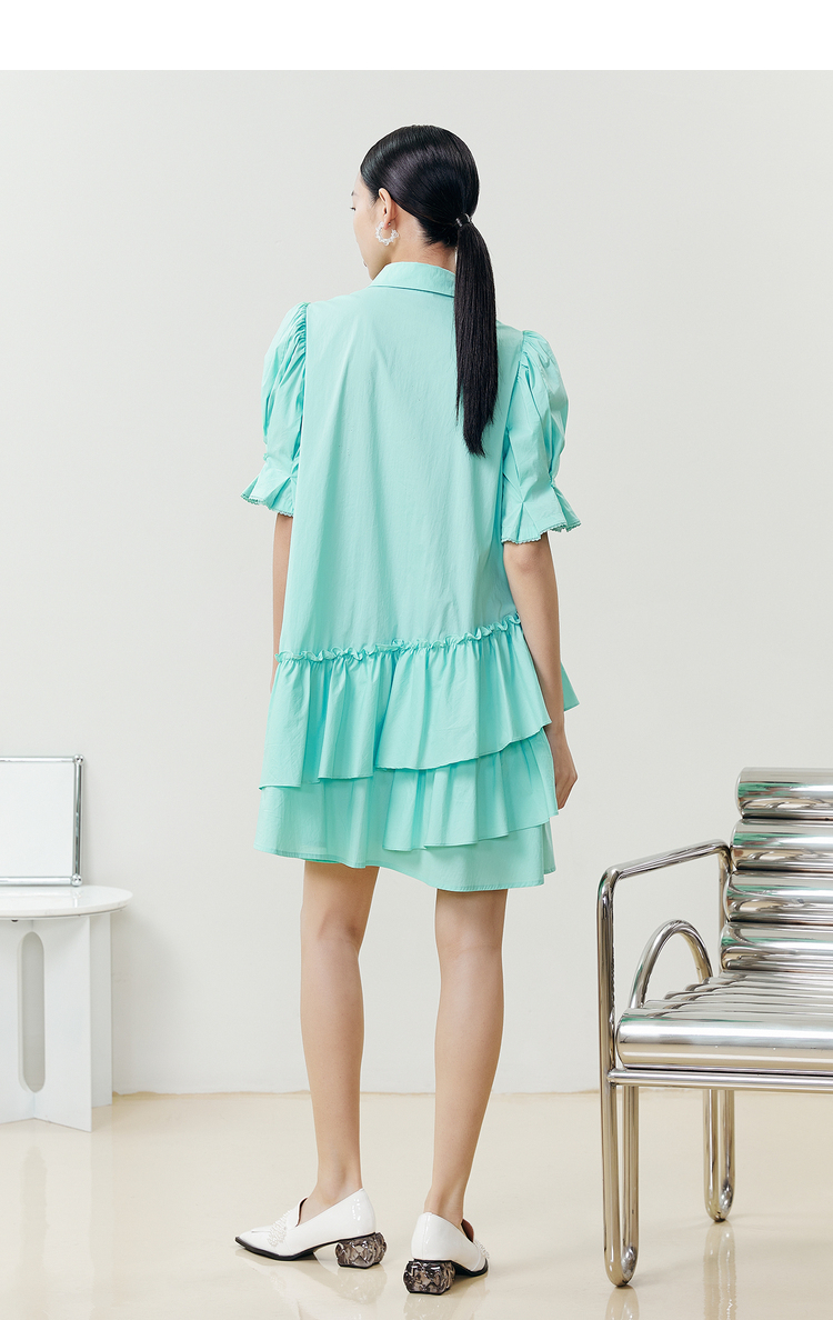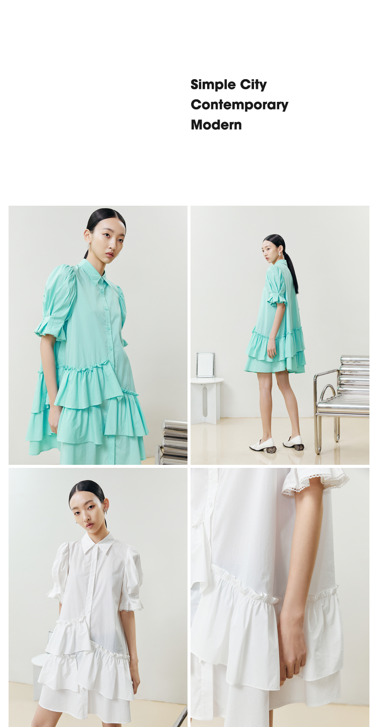 NEELLY纳俪商场同款设计感连衣裙女夏季不规则下摆泡泡袖娃娃裙N22041Y01017
