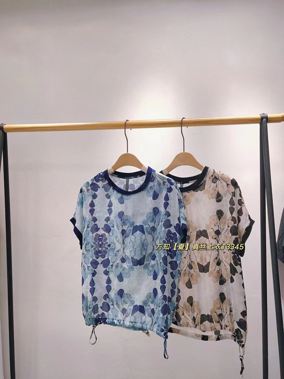3345 # 蓝 M L 新款宽松短袖圆领印花衫 休闲显瘦洋气