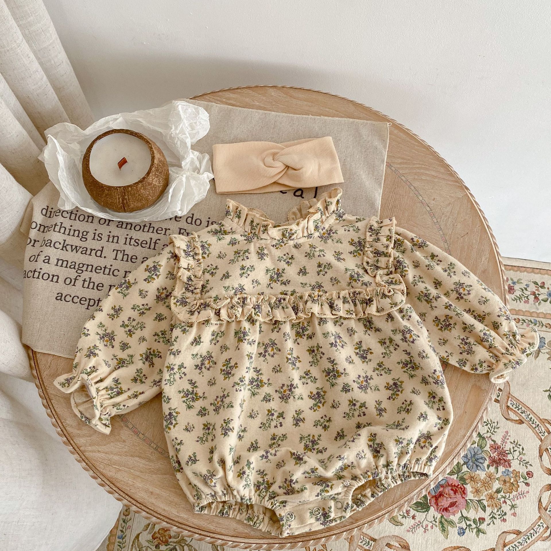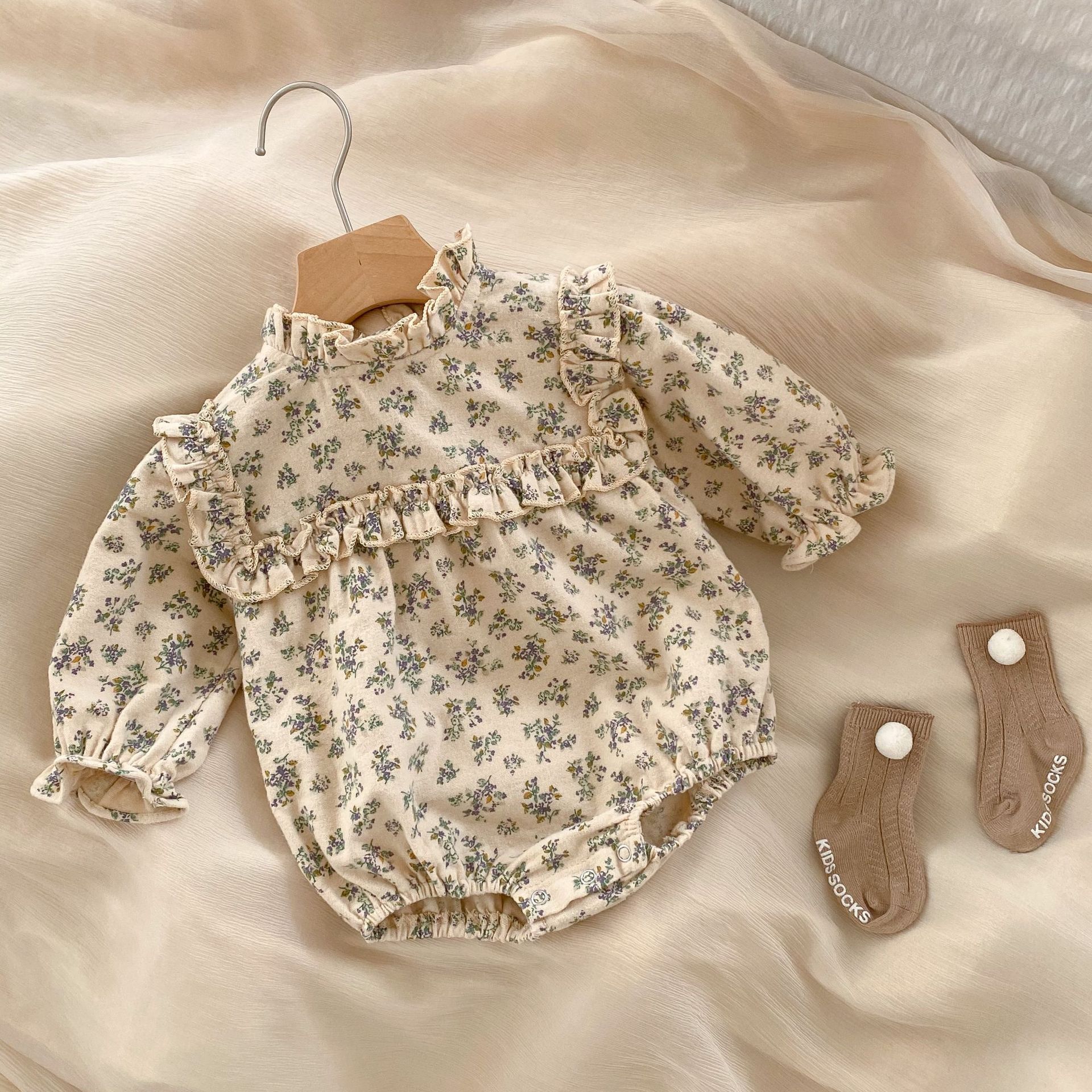 【春季上新!儿童长袖连体衣】ins 2023春装女宝宝婴幼儿童碎花木耳领哈衣长袖连体衣三角爬服sh