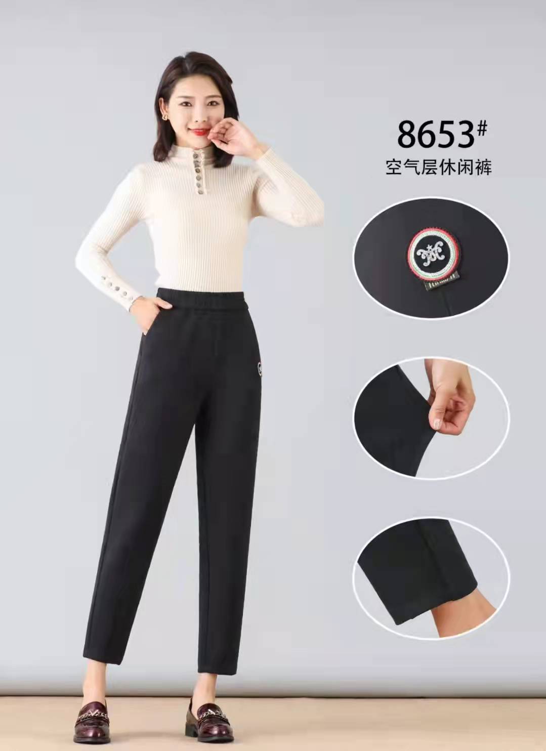 商品卖点 萝卜裤搭配马丁靴是秋冬季首选,立体裁剪宽松舒适,隐藏多余的赘肉更显瘦,拉长腿部线条轻松无束缚感