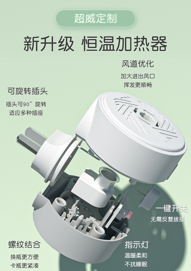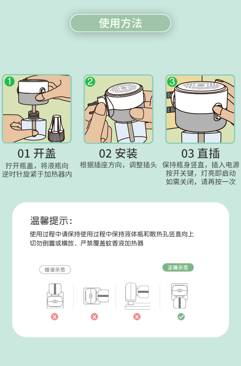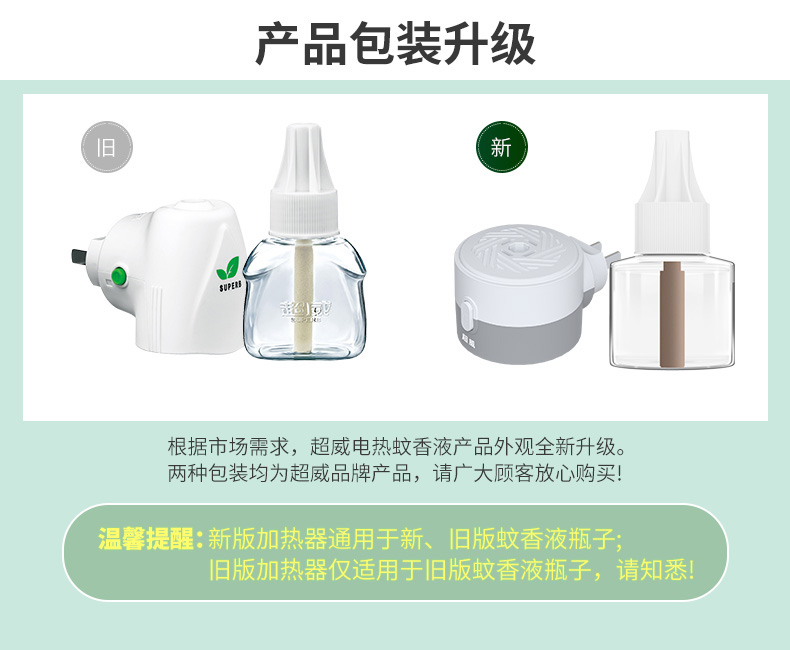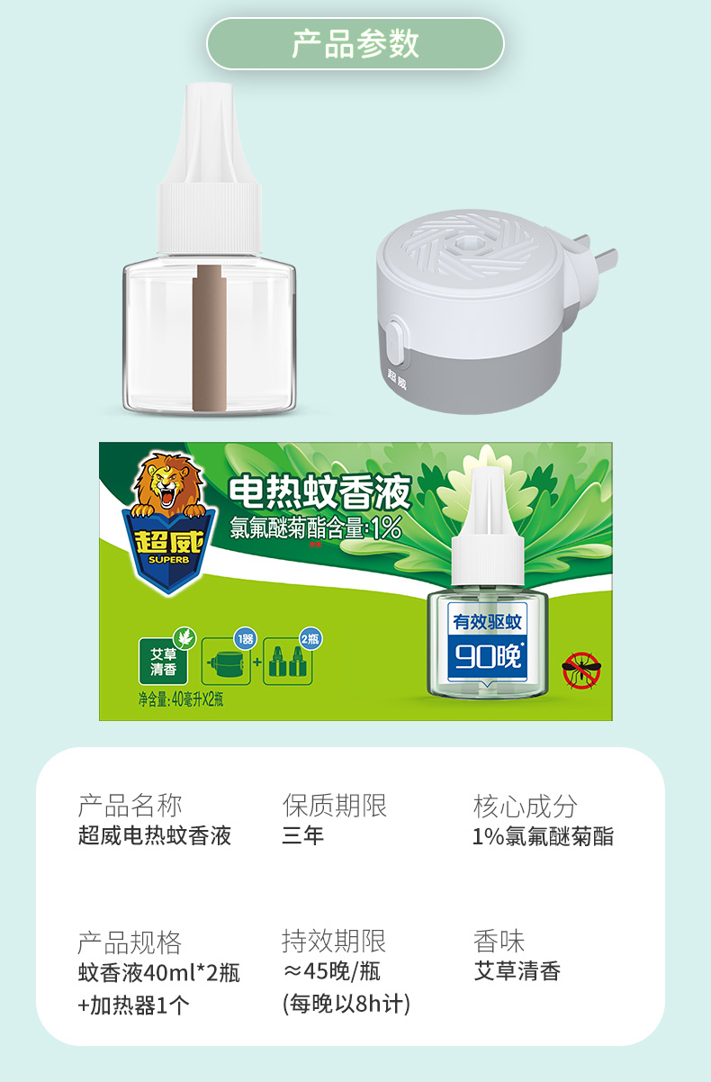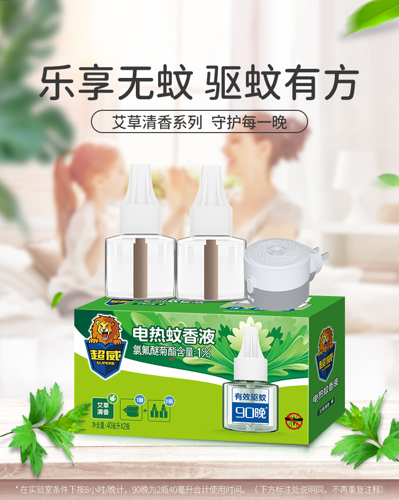 超威电热蚊香液艾草清香2瓶+1个加热器套装