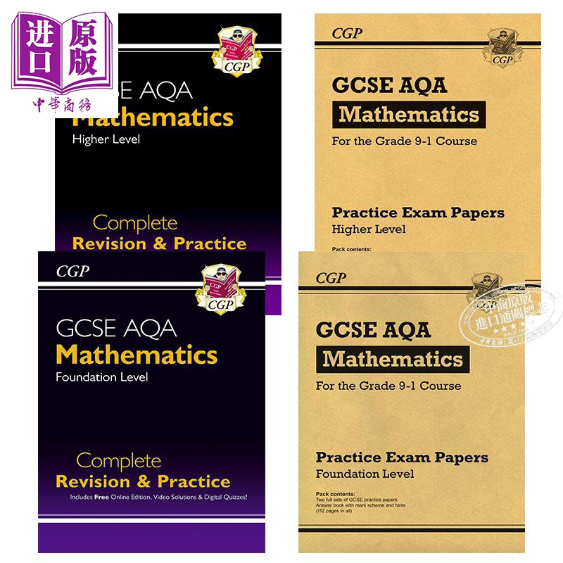 英国CGP原版GCSE基础及进阶数学完整复习实践+练习测试卷套装4册 含在线资源含答案