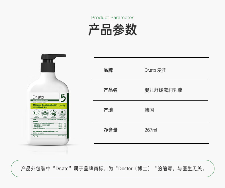 爱托Dr.ato 5号婴幼儿面霜类胎脂舒缓保湿身体乳267ML