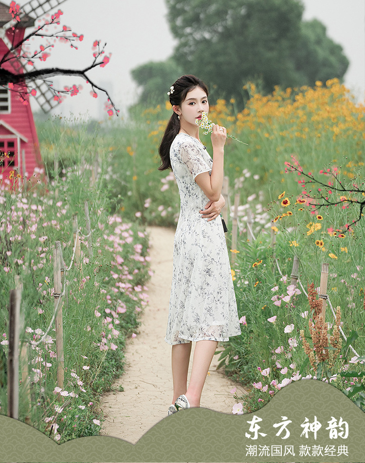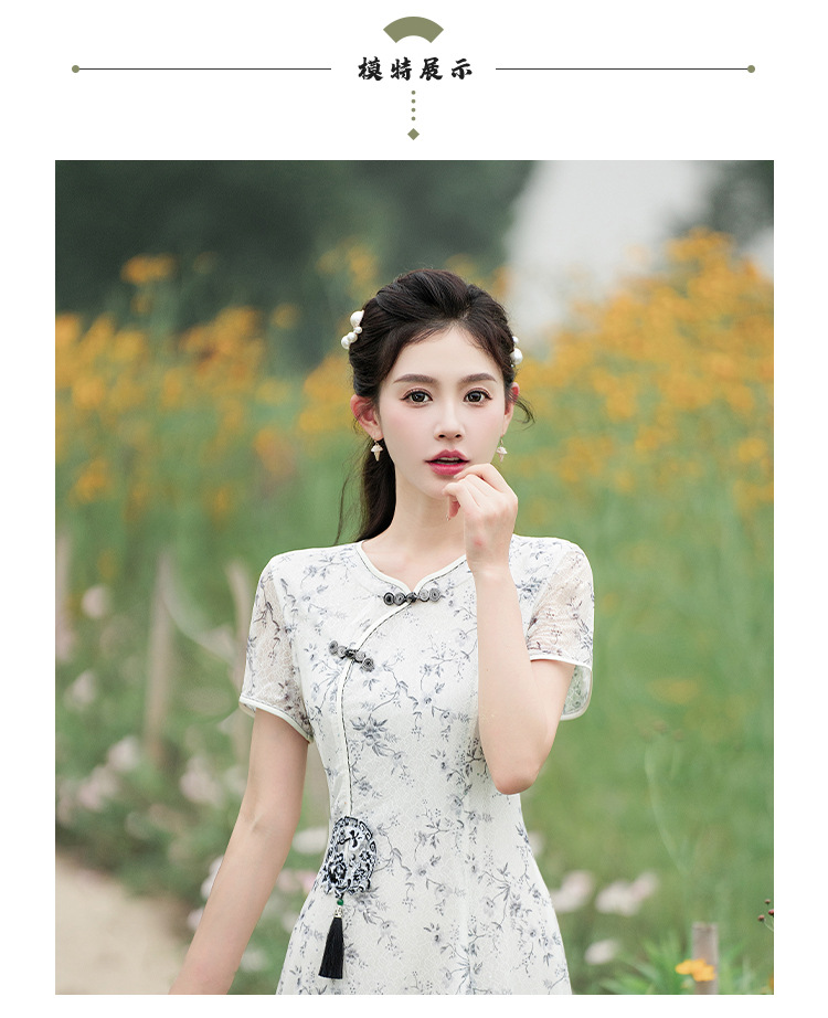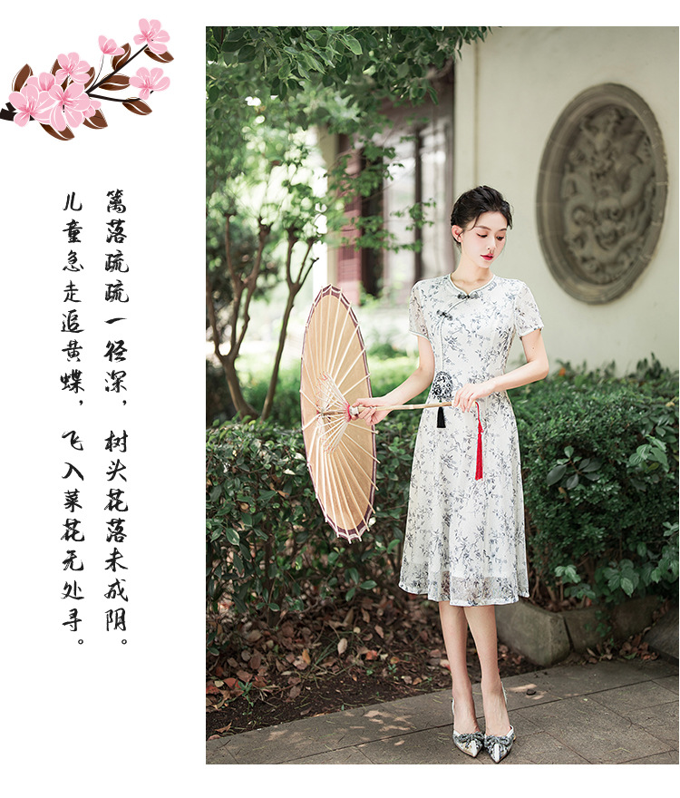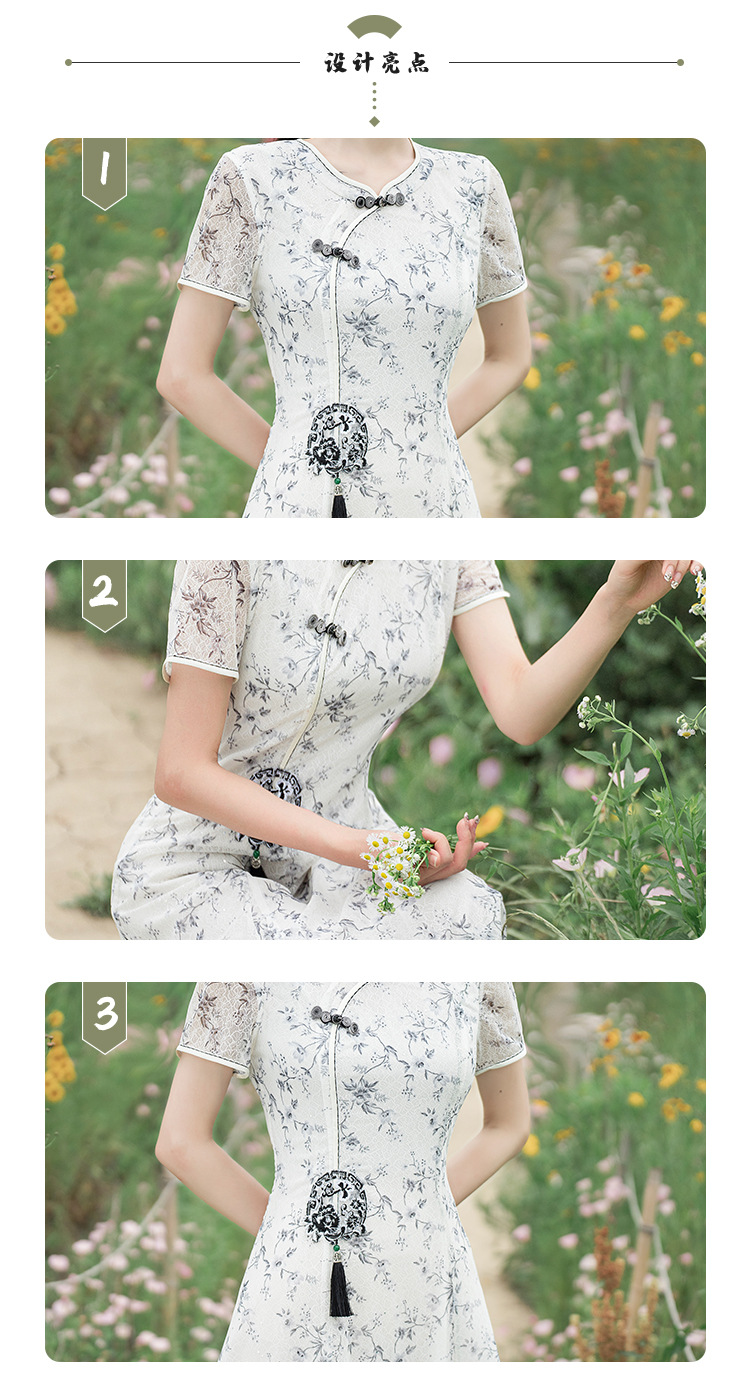 蕾丝旗袍夏新款改良大摆连衣裙双层修身JLM3138