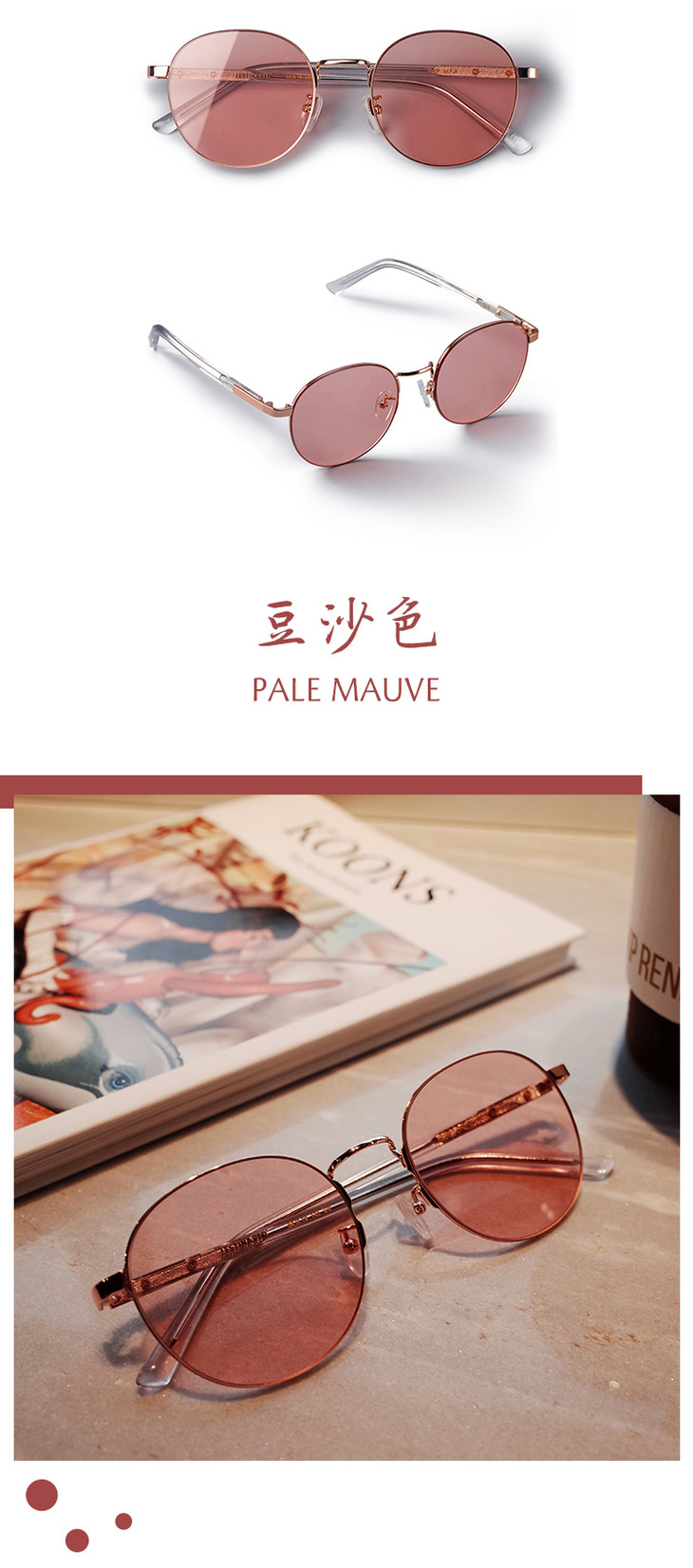 【STAR2CON】J.ESTINA RED「豆沙粉」复古圆框墨镜