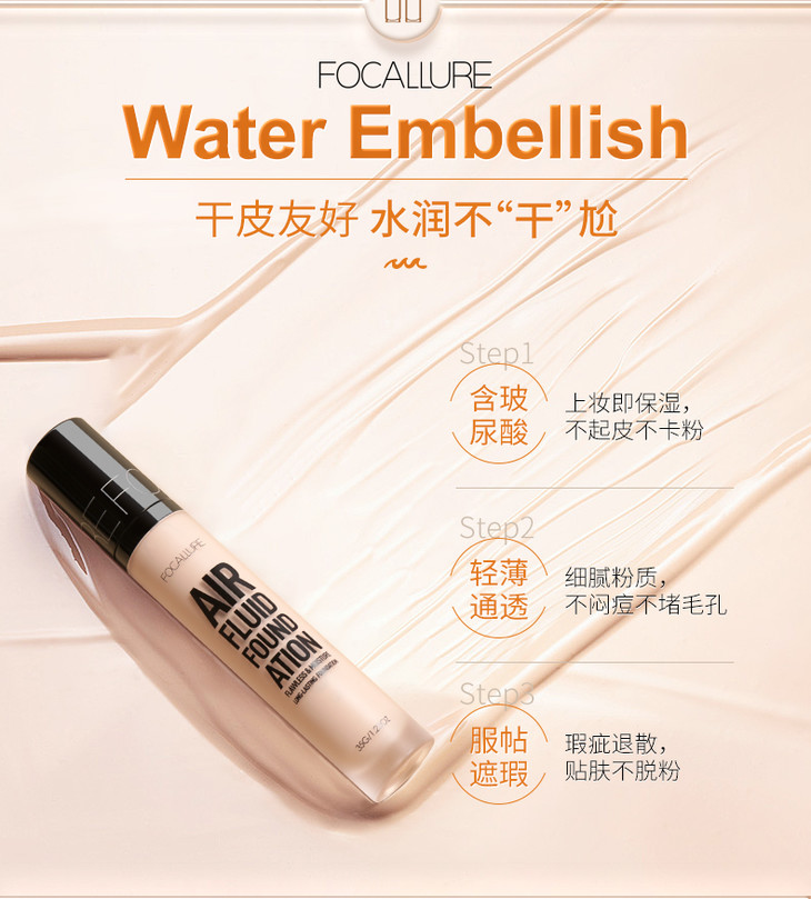 Focallure菲鹿儿粉底液保湿遮瑕裸妆持久控油独角兽bb霜彩妆FA66