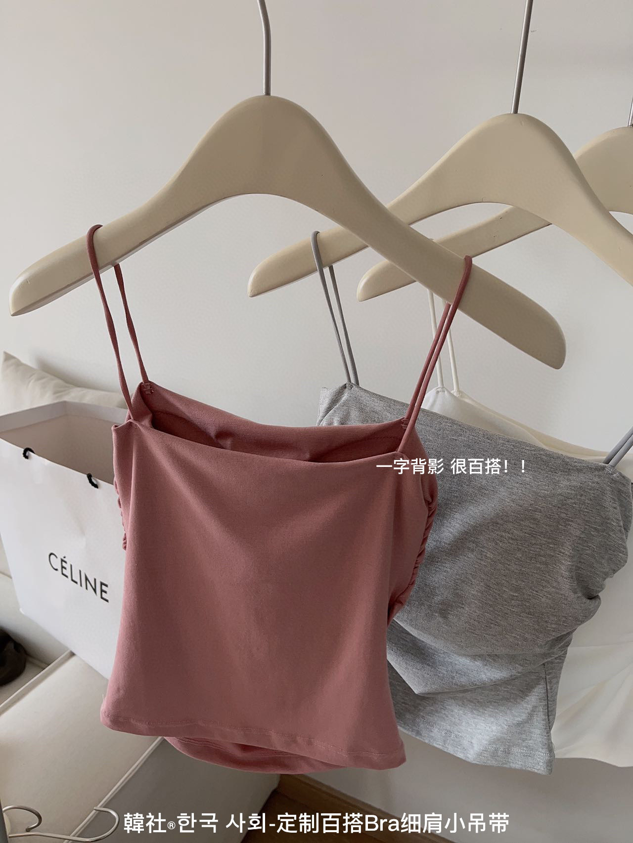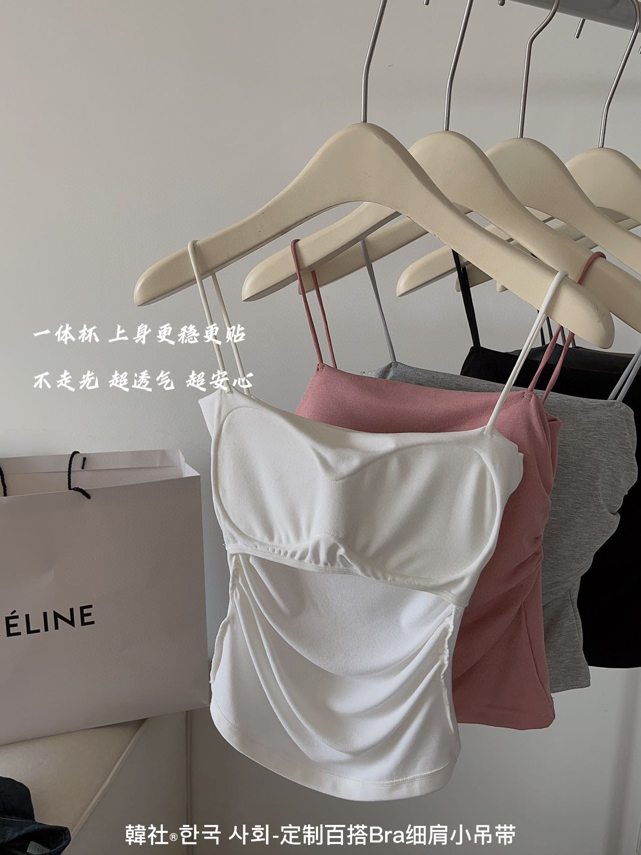 【超值两件装!百搭细肩小吊带】春夏美背吊带小背心女内搭外穿带胸垫一体式内衣百搭纯色打底背心,一体式设计,美背不再难。ry