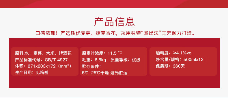 雪花 脸谱啤酒 ≥4.1度 500ml*12