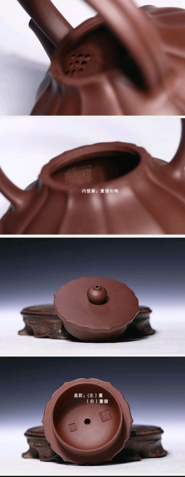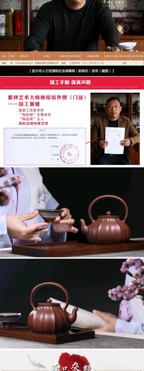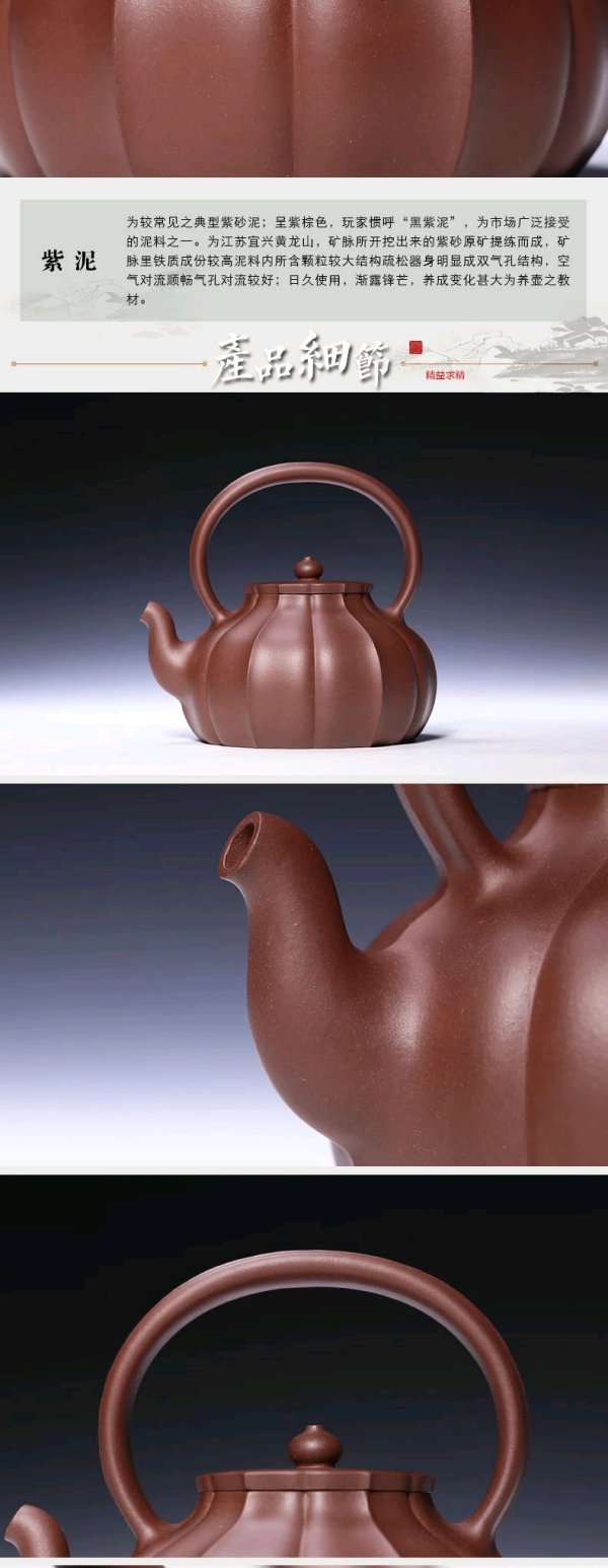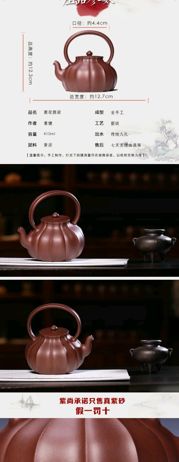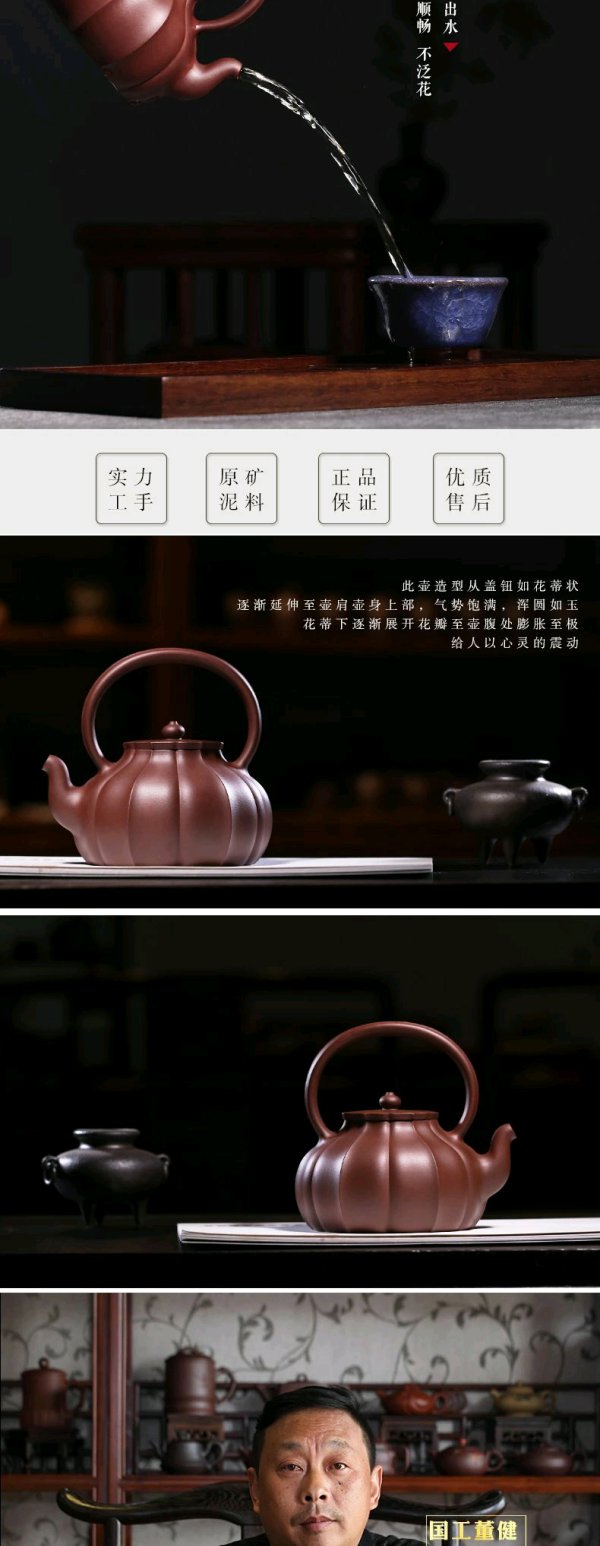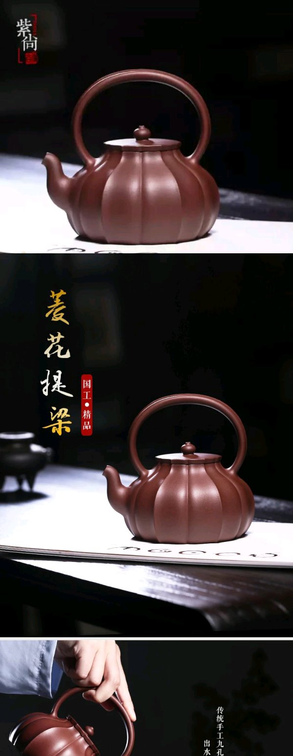 菱花提梁紫砂壶茶壶全纯手工宜兴名家收藏精品大口茶具泡茶壶国工董健410ml原矿紫泥