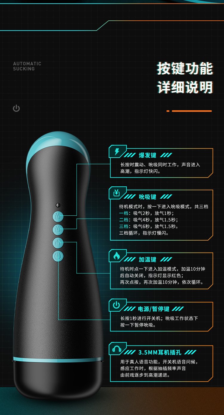 谜姬 星幻飞机杯智能互动发声加温三挡调节吮吸体感男用