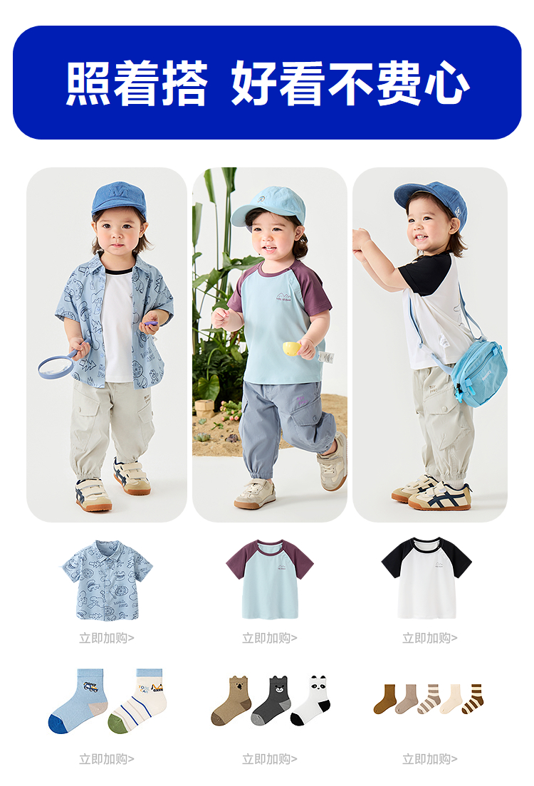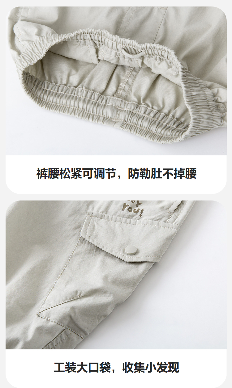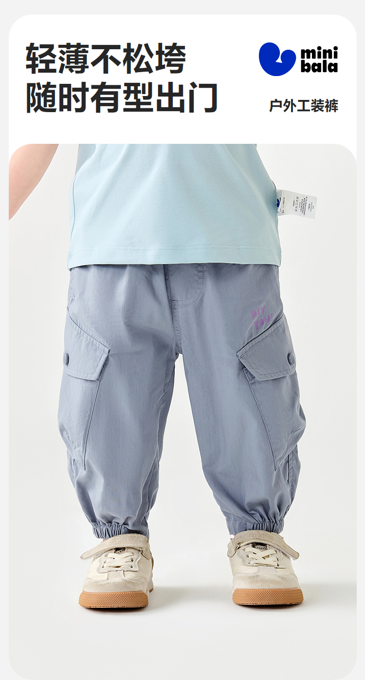 迷你巴拉长裤夏季男宝轻薄柔软透气可调节裤腰户外工装裤