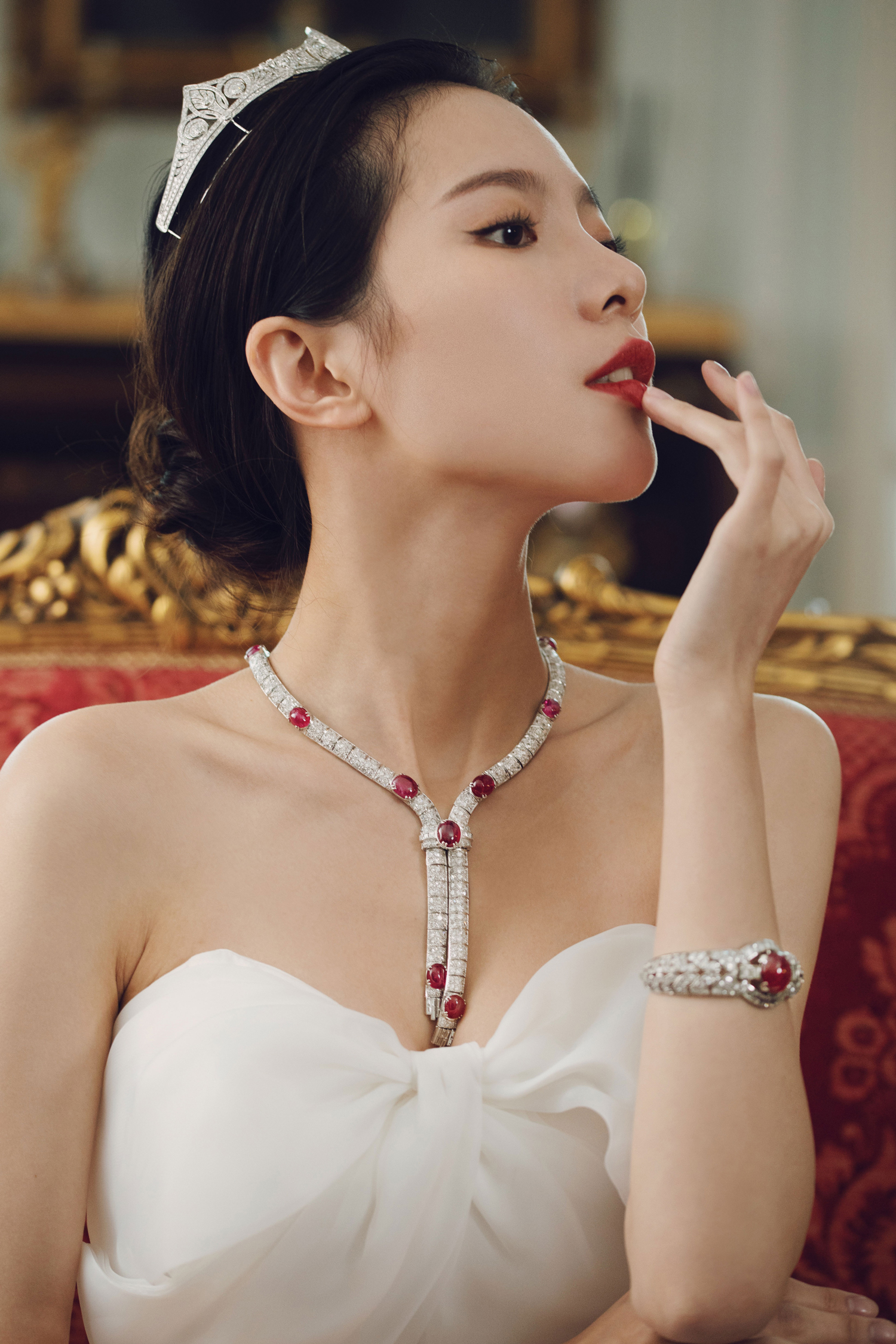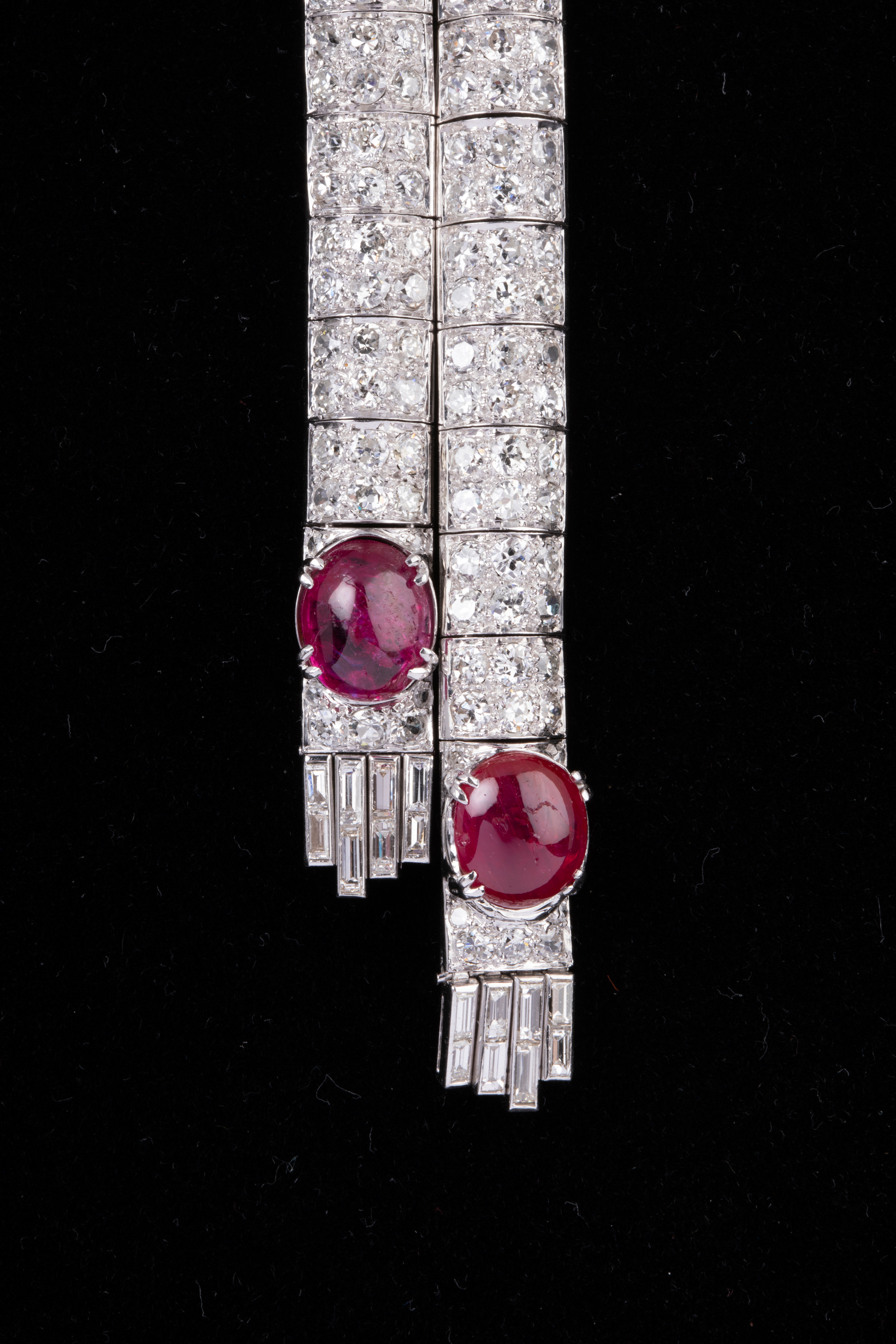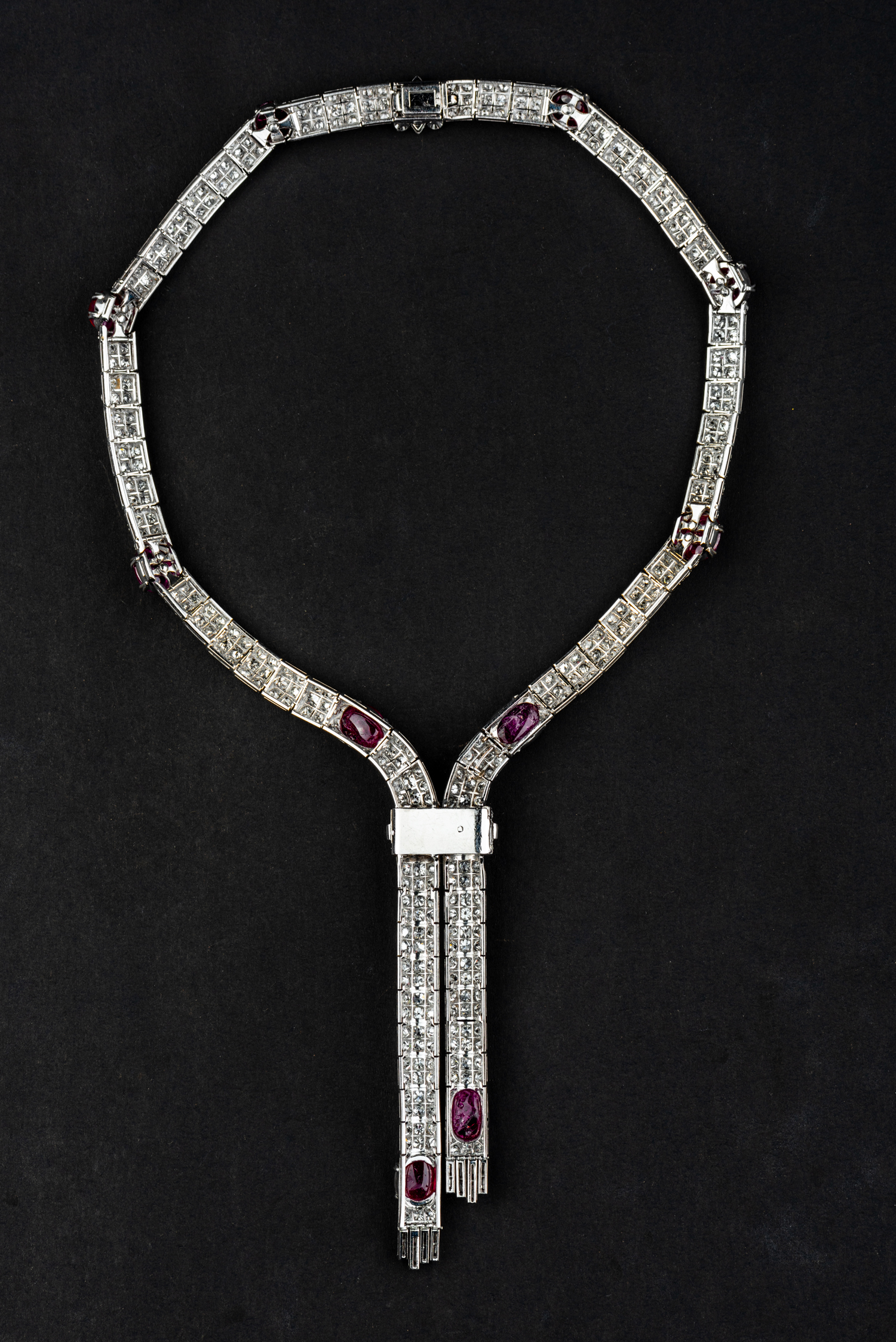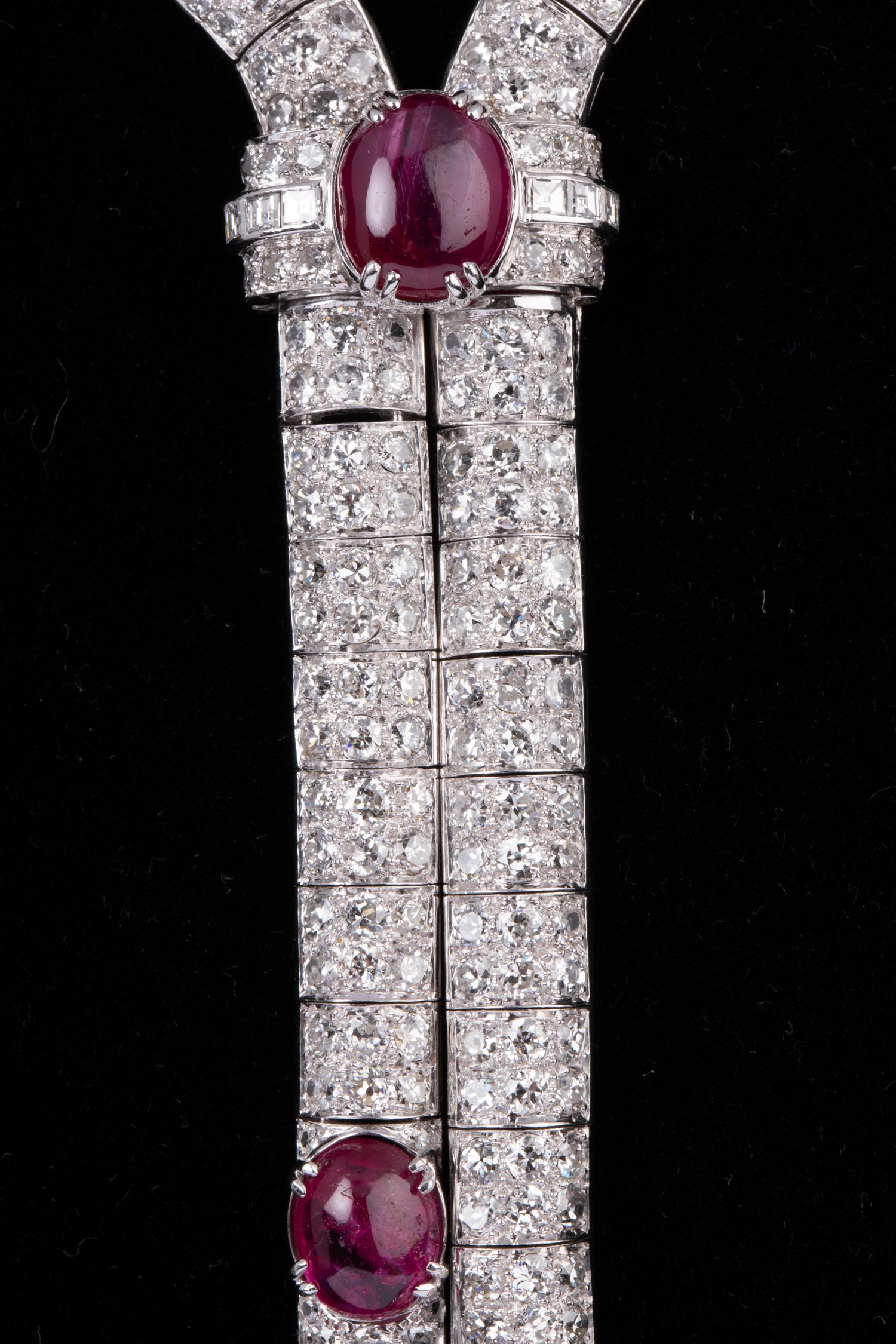 独角鹿西洋古董珠宝首饰法国铂金镶缅甸无烧红宝石钻石领带式项链
