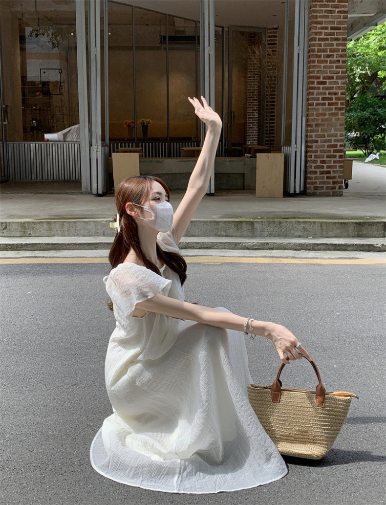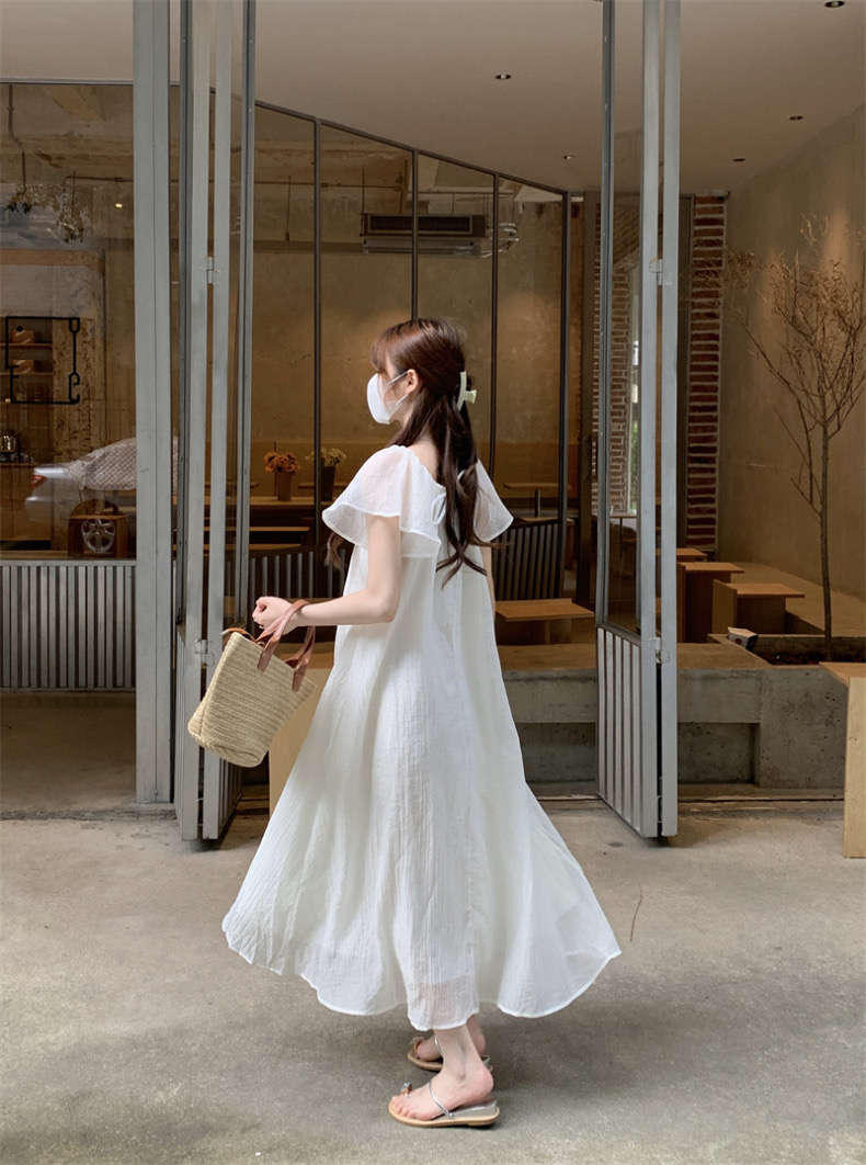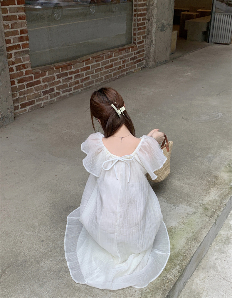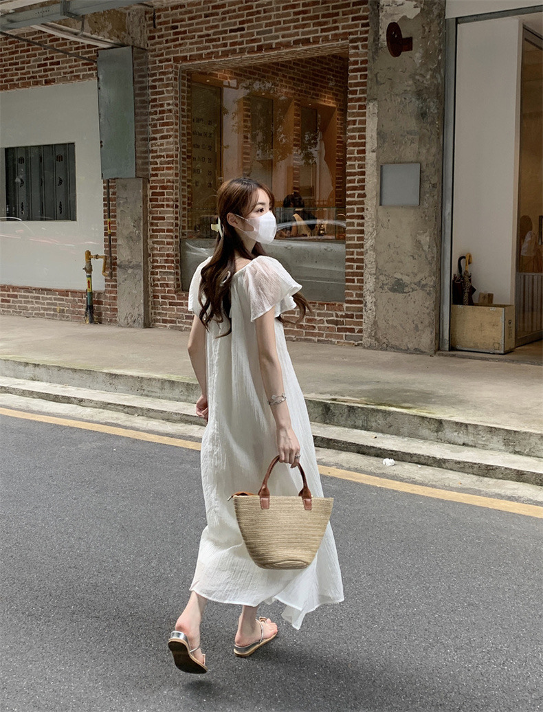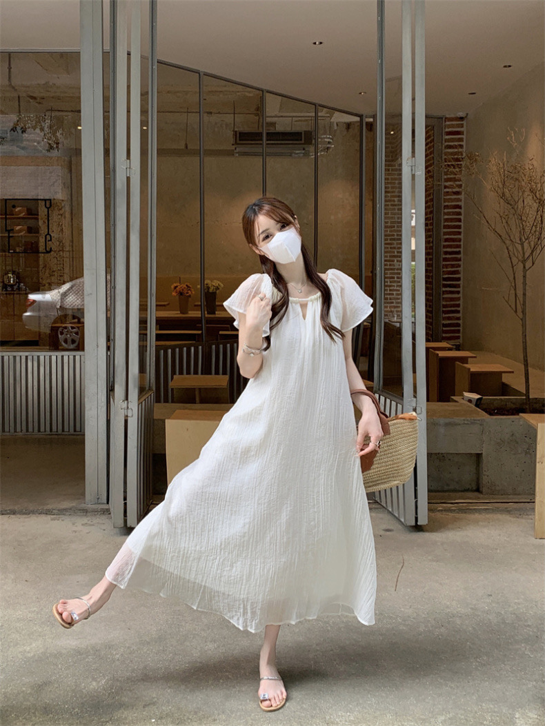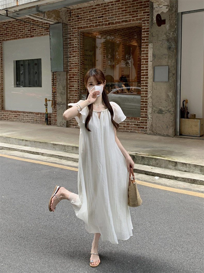 【GZ】无忧购法式温柔海边度假风宽松显瘦居家外穿小飞袖连衣裙1819(截单后7天发货)25年清仓捡漏