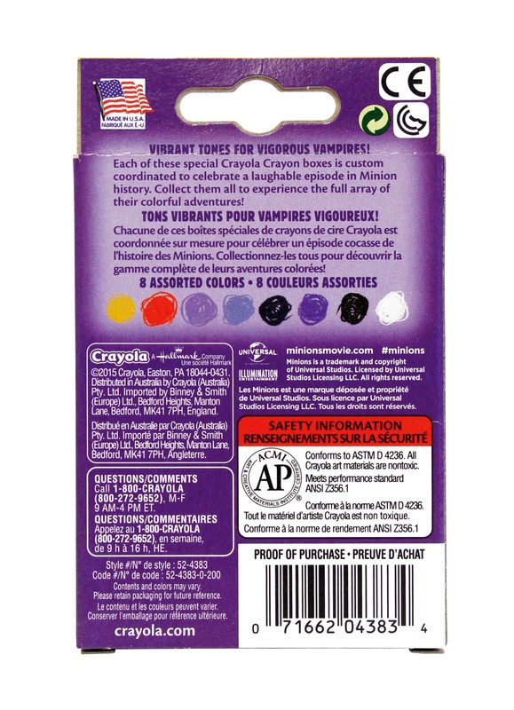 绘儿乐小黄人蝙蝠造型8色彩色蜡笔52-4383