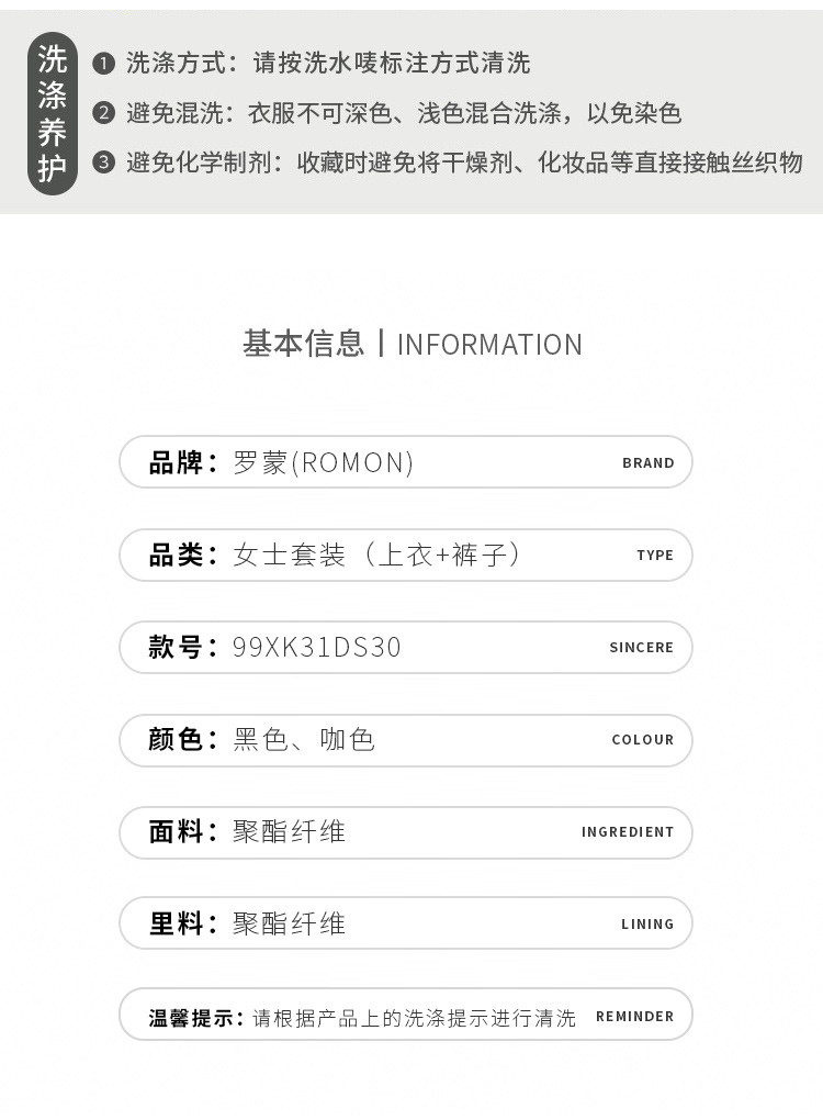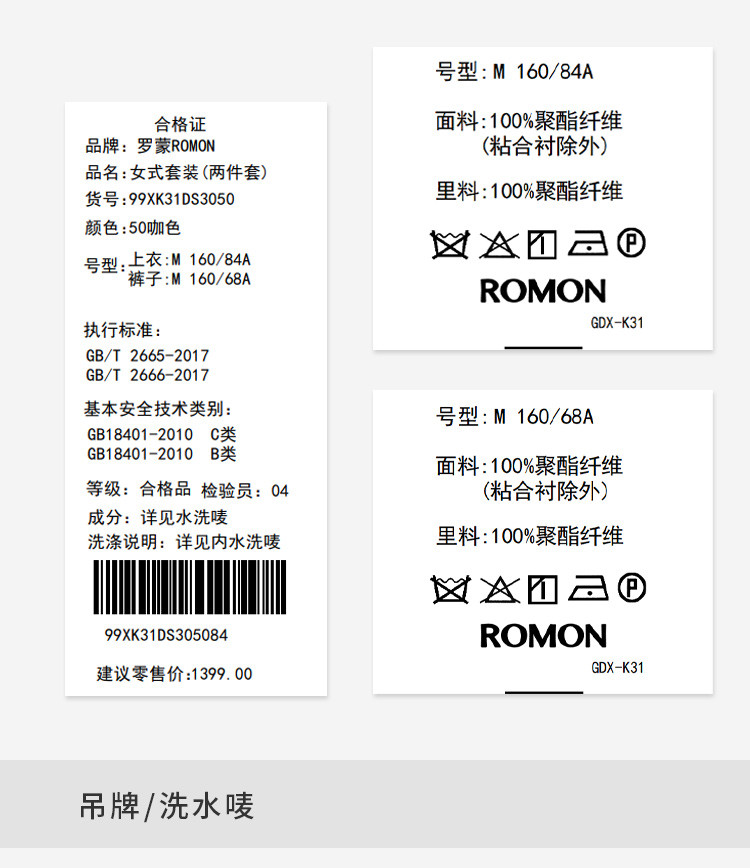 面料:100%聚酯纤维 (粘合衬除外) 里料:100%聚酯纤维