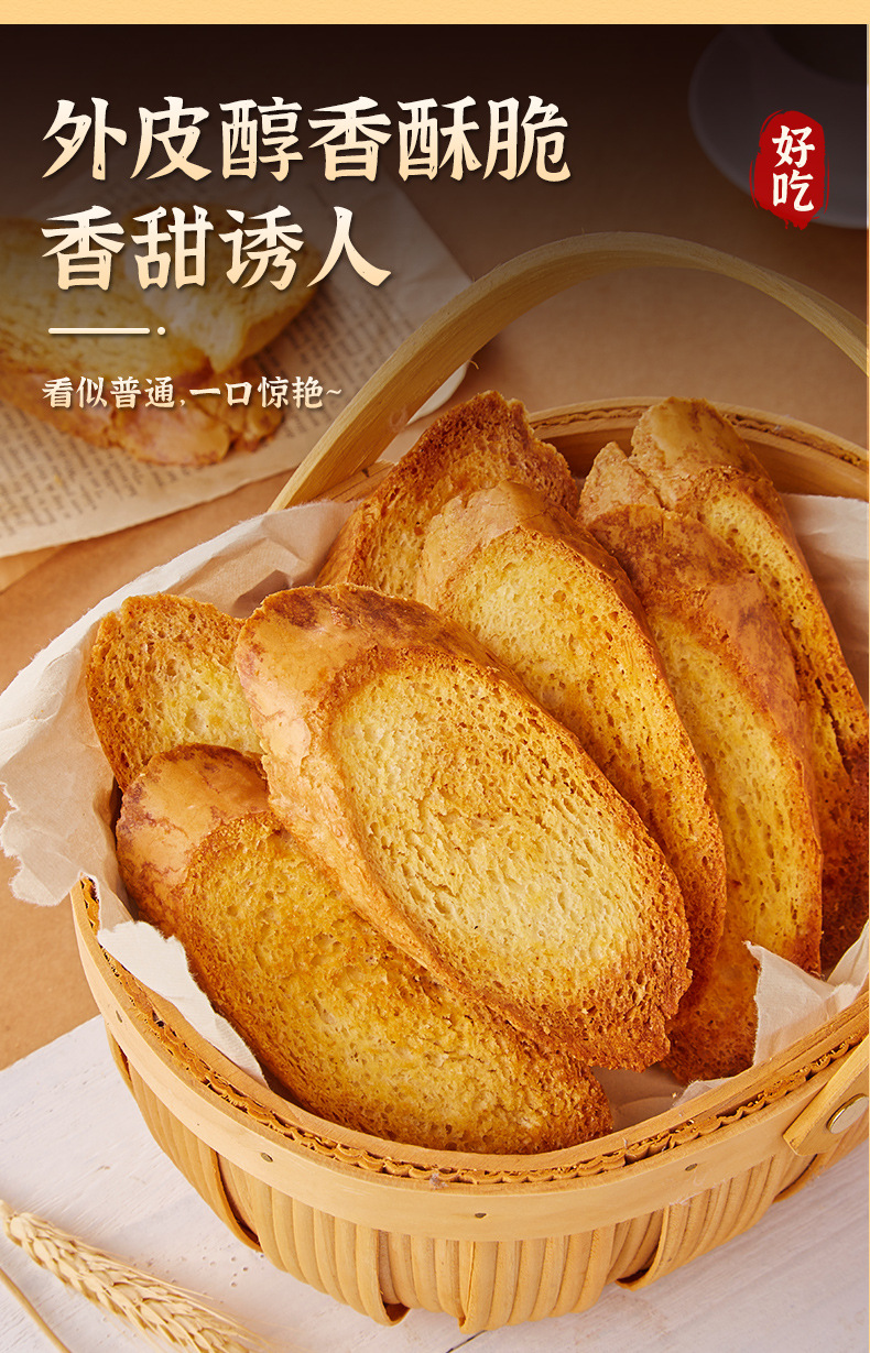 【外皮醇香酥脆!法式奶香面包】色泽金黄,炭烤奶香情;面包饼干焦脆香,满口芬芳甜;干片早餐饼干香酥烤馍片零食大全各种美食整箱小包装放心吃进口中老年健康