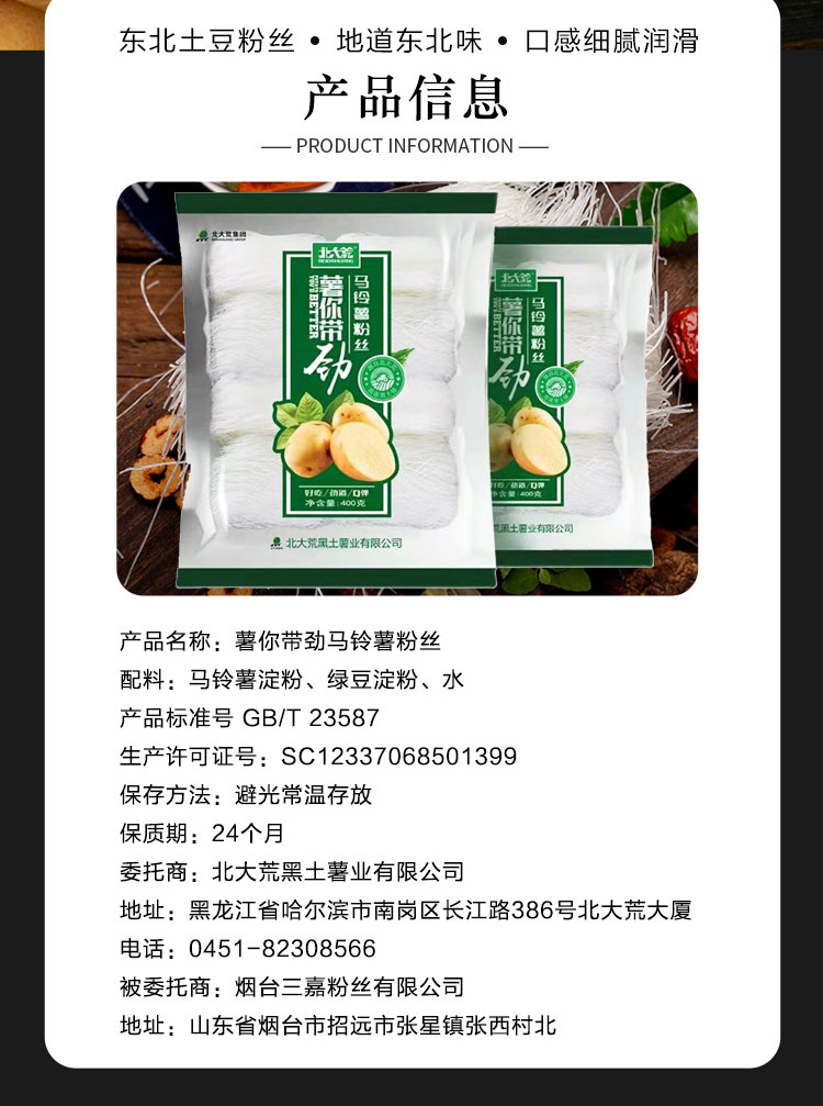 北大荒 干粉丝 400g*2袋 凉拌筋道