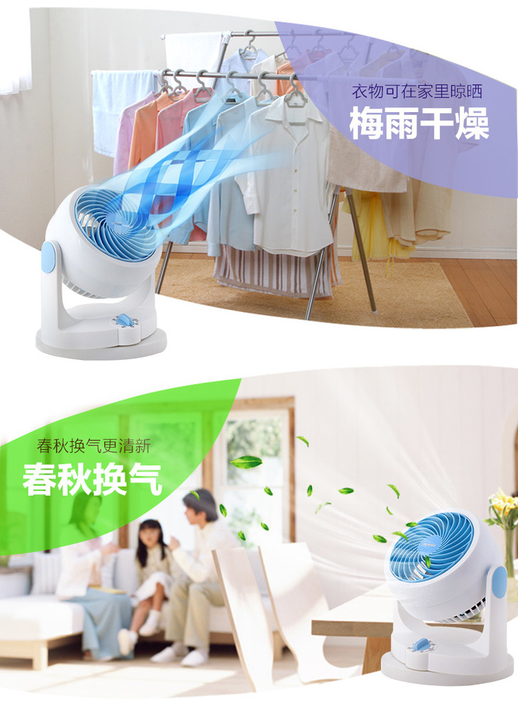 日本iris爱丽思空气循环扇台式家用超静音小型对流扇PCFHD15NCB蓝