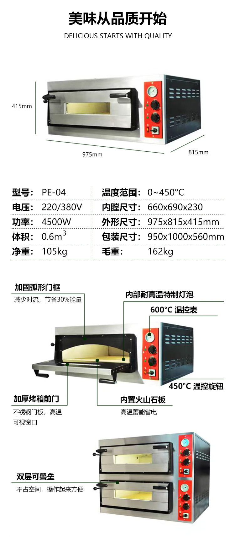 PEN-04欧罗巴披萨炉4x12"披萨石板450c高温