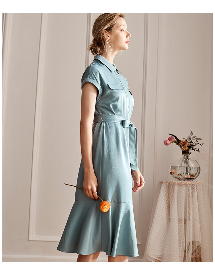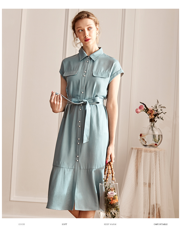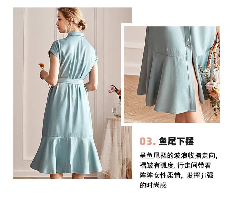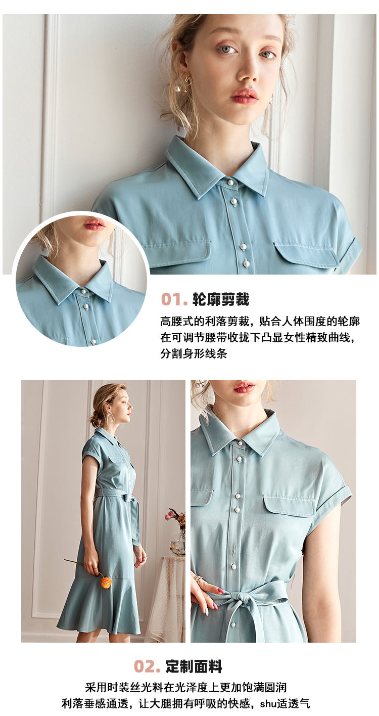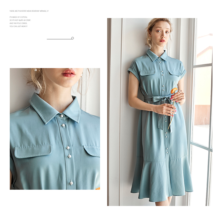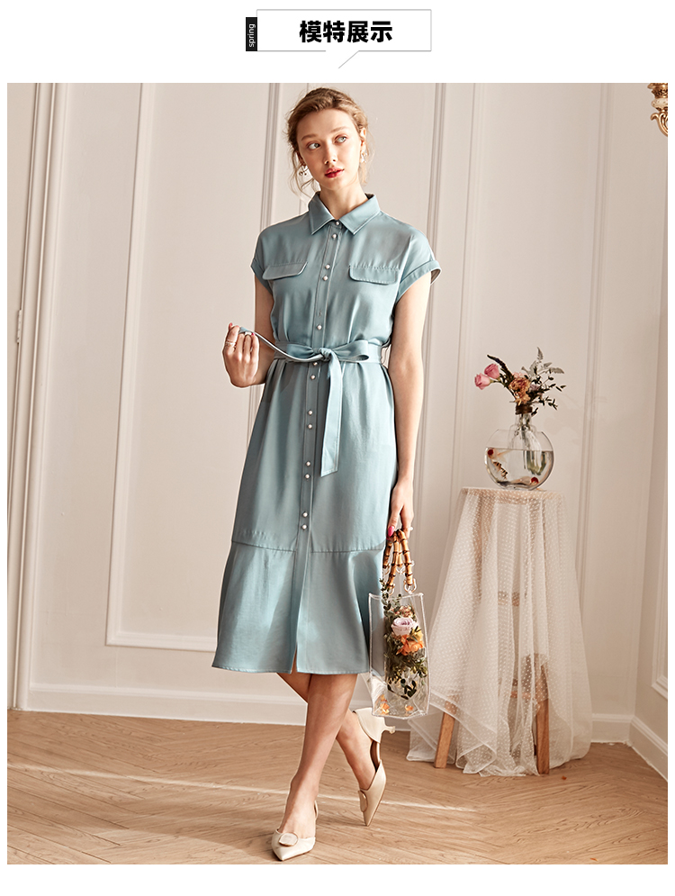 欧芮儿短袖连衣裙女中长款气质收腰显瘦百搭A字裙ins