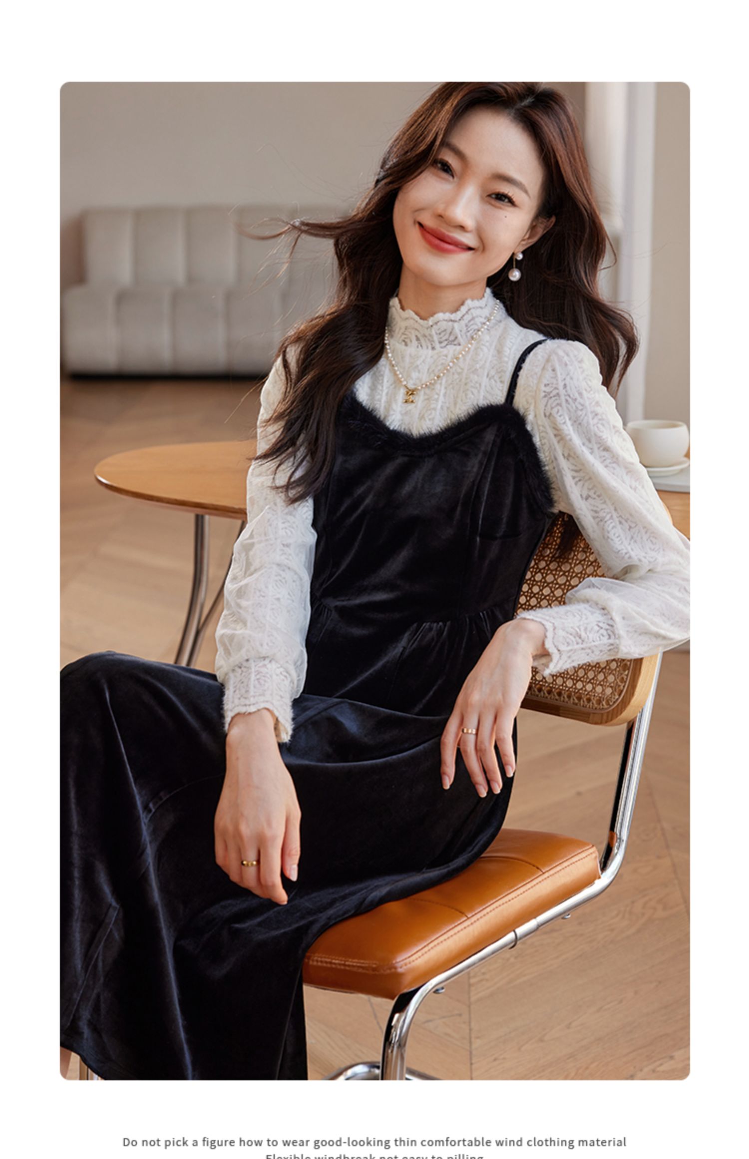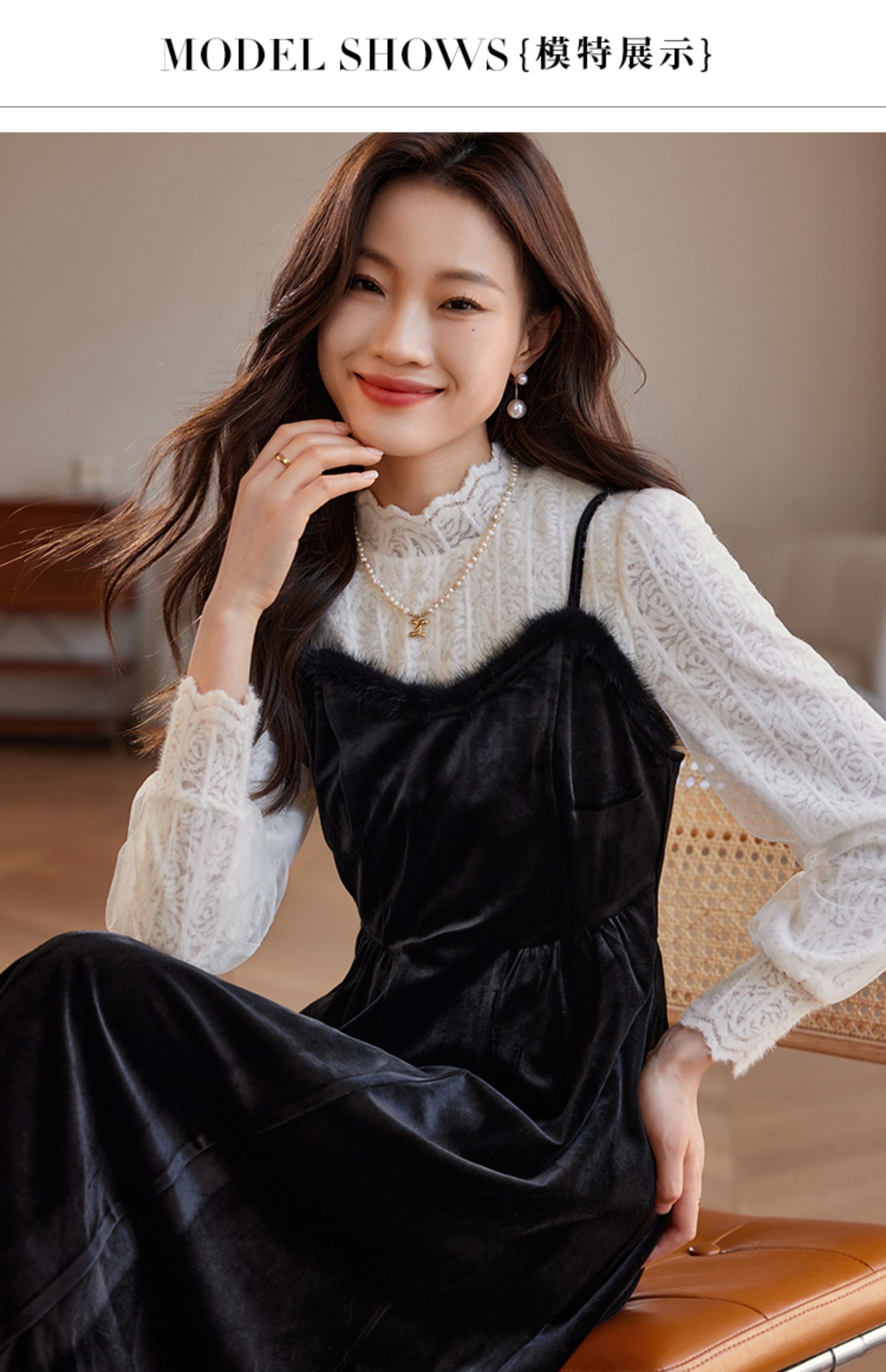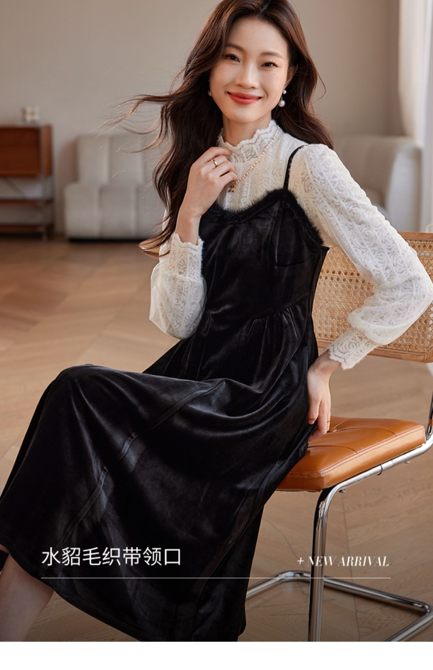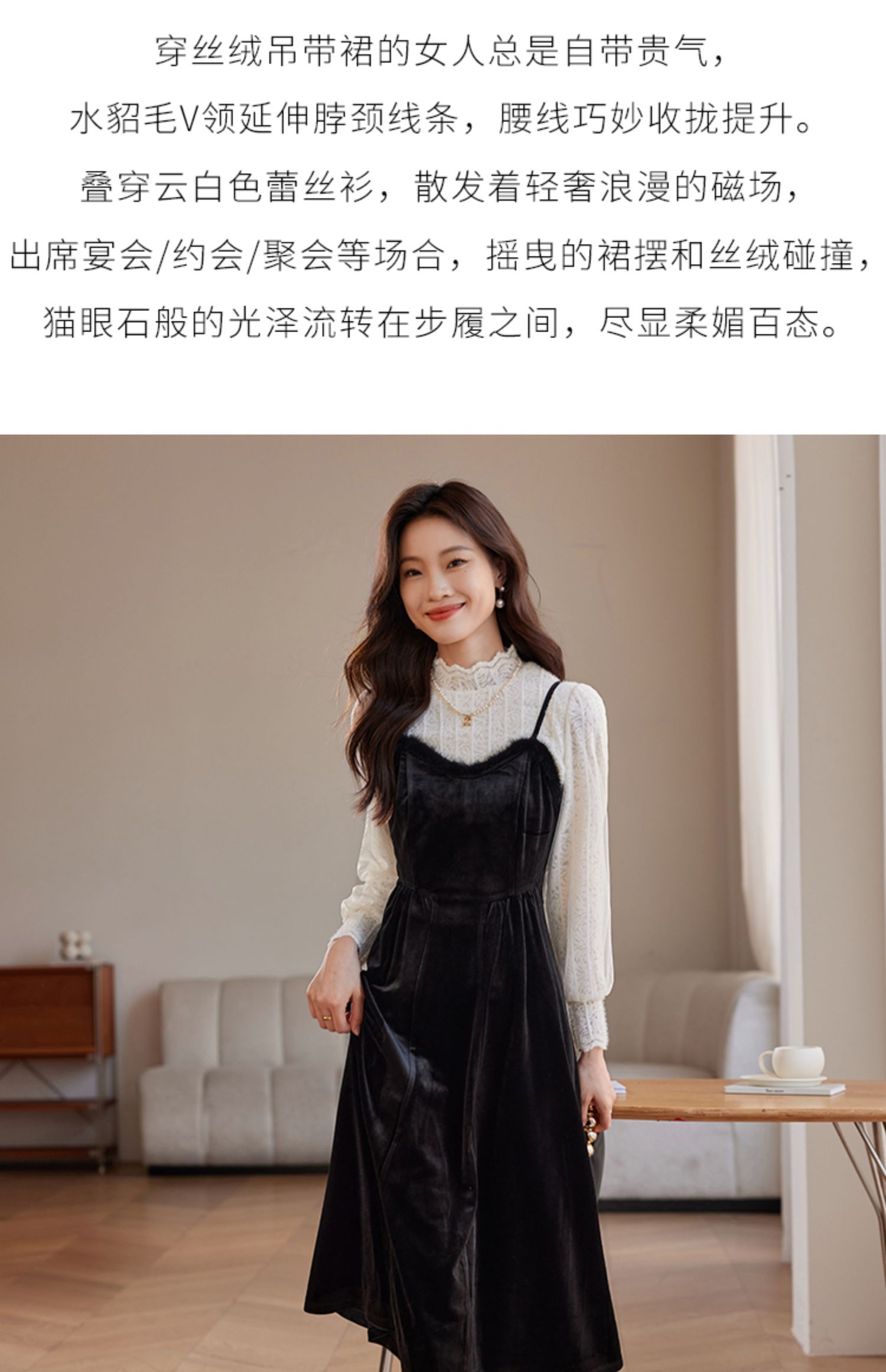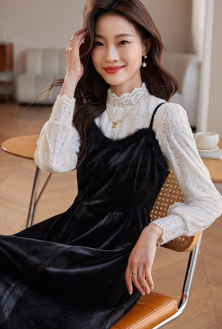 【年终特卖】熙世界高端金丝绒吊带连衣裙女秋冬季水貂毛V领无袖收腰显瘦裙子