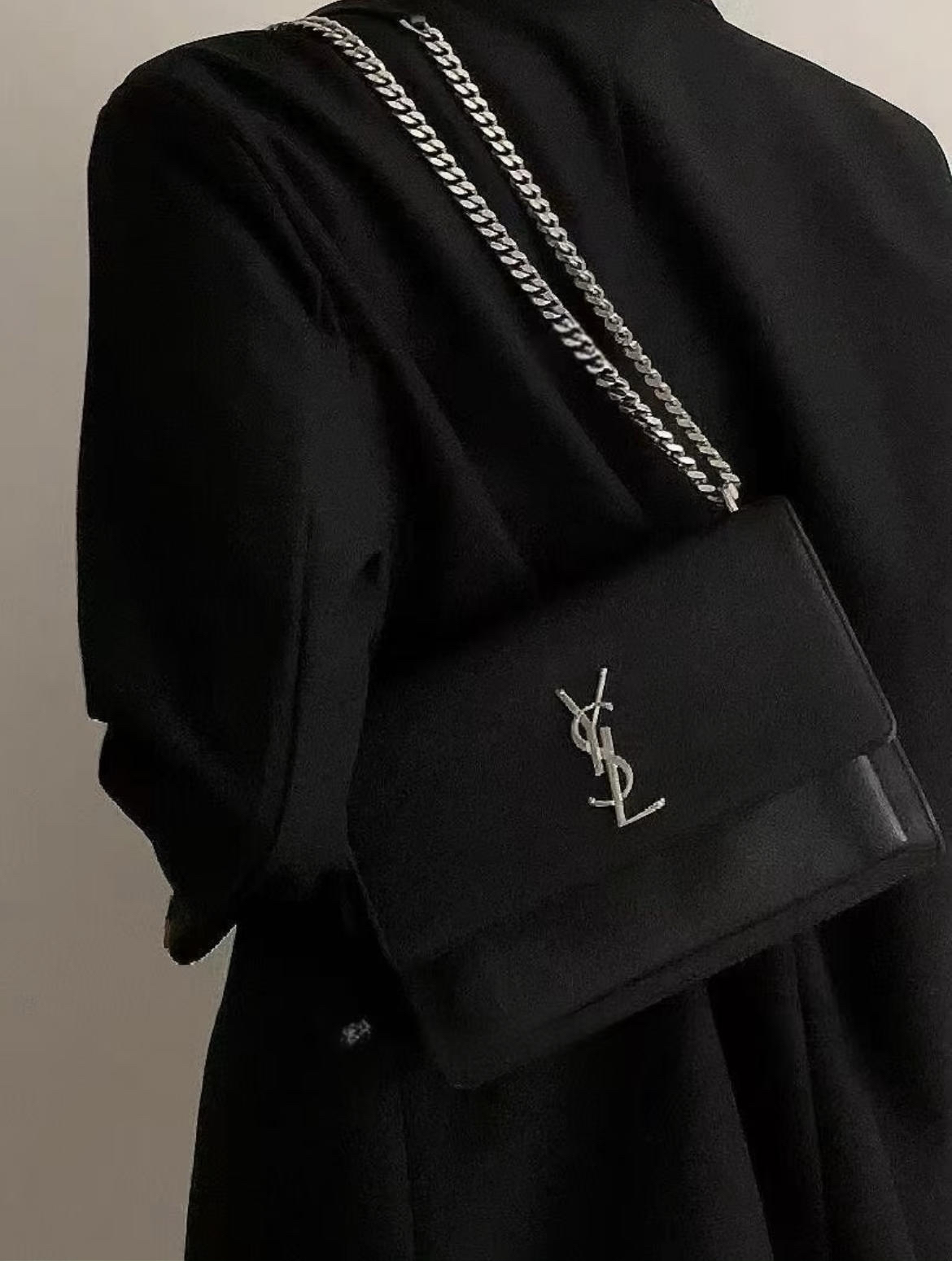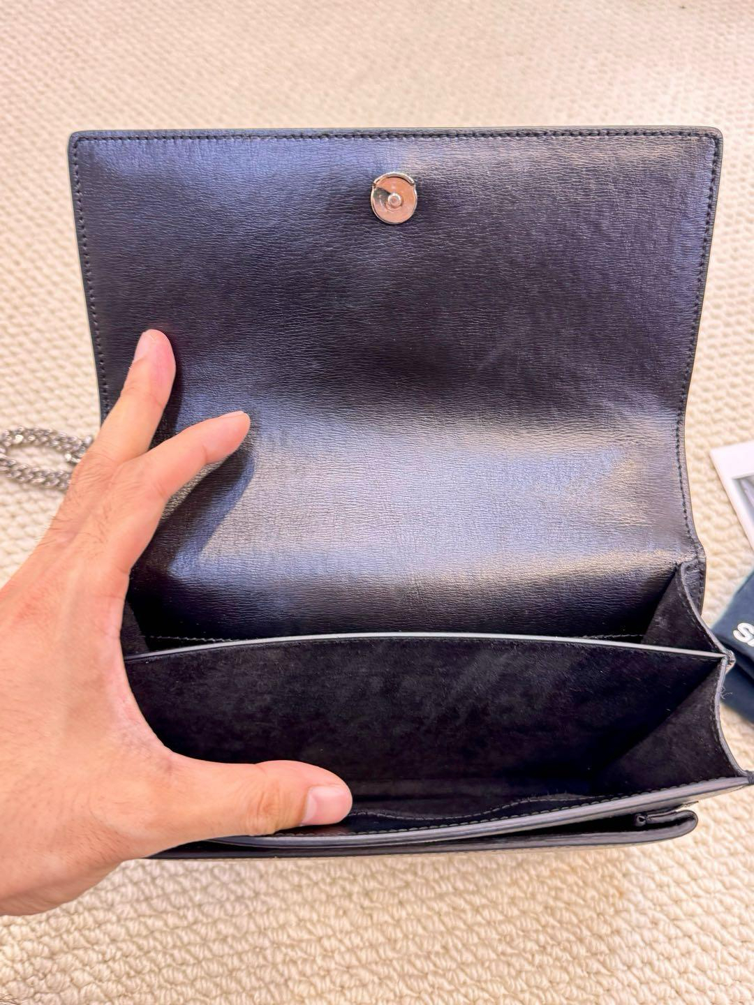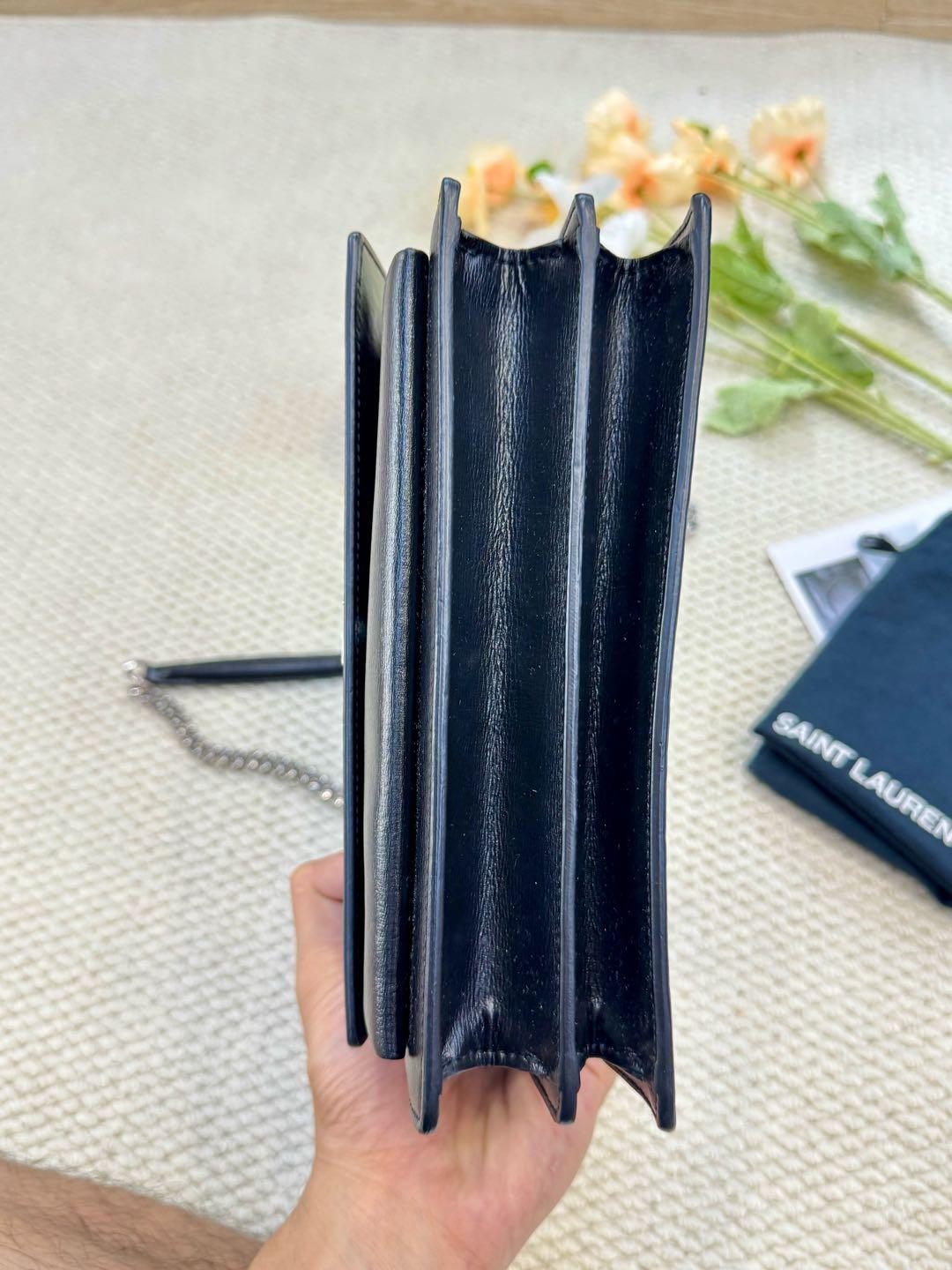 【商品详情】正品二手 ysl 中号 黑银 牛皮 日落包🍂97新 22*16 配件:防尘袋。内包口有正常使用痕迹 包背面有微微使用划痕。高级干练大女主