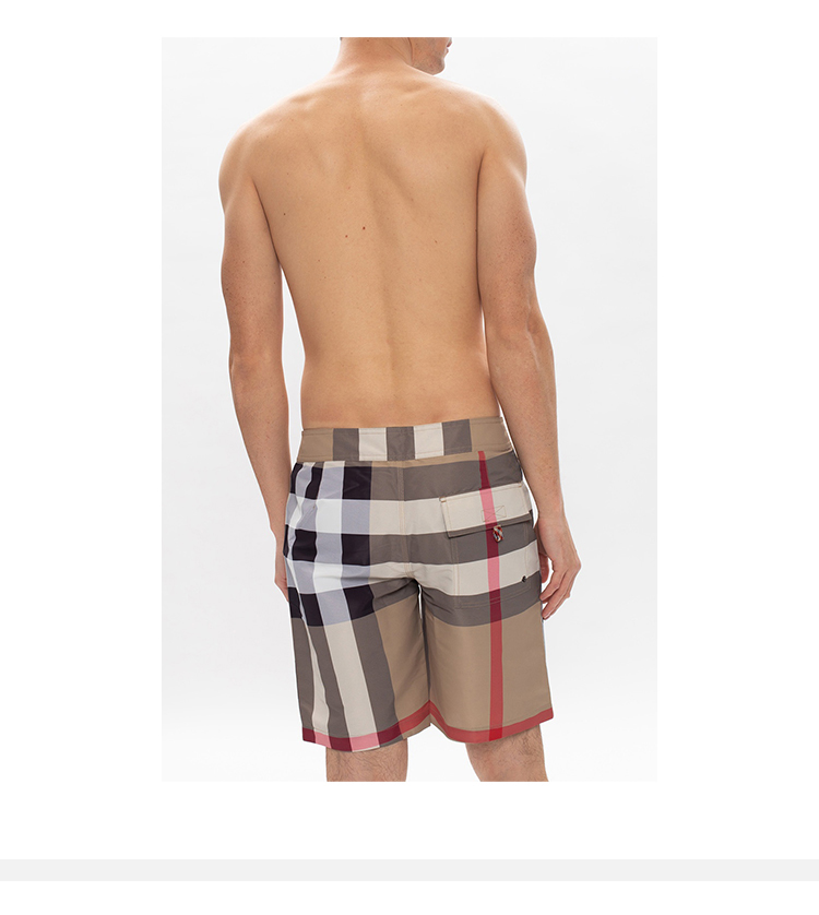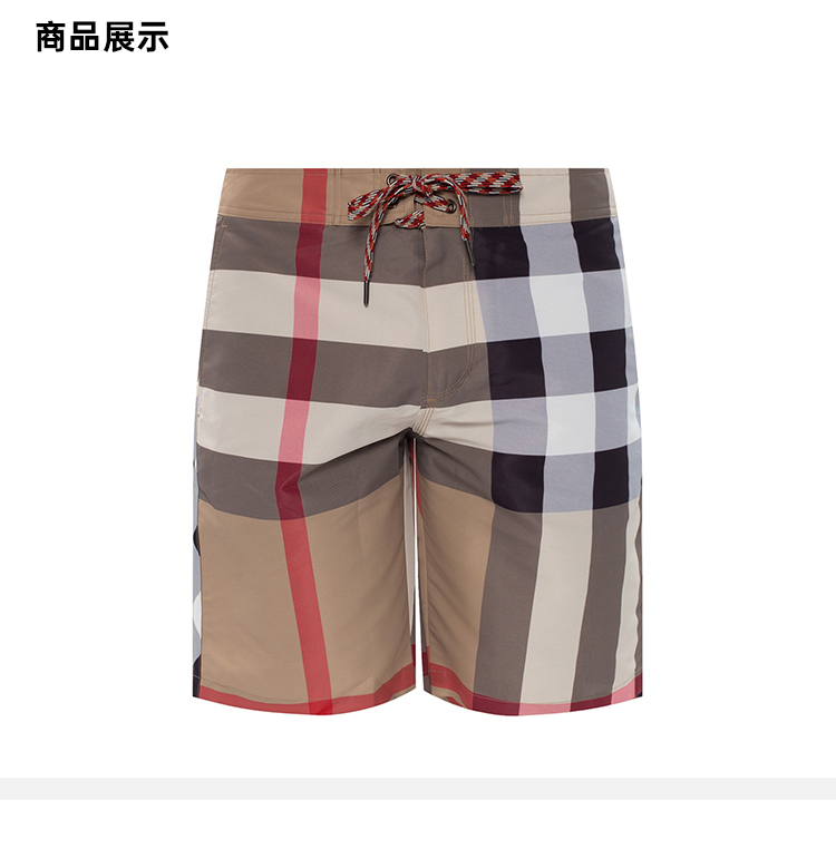 【三】BURBERRY 巴宝莉 男士格纹休闲短裤 卡其色白格子 8022647 A7028