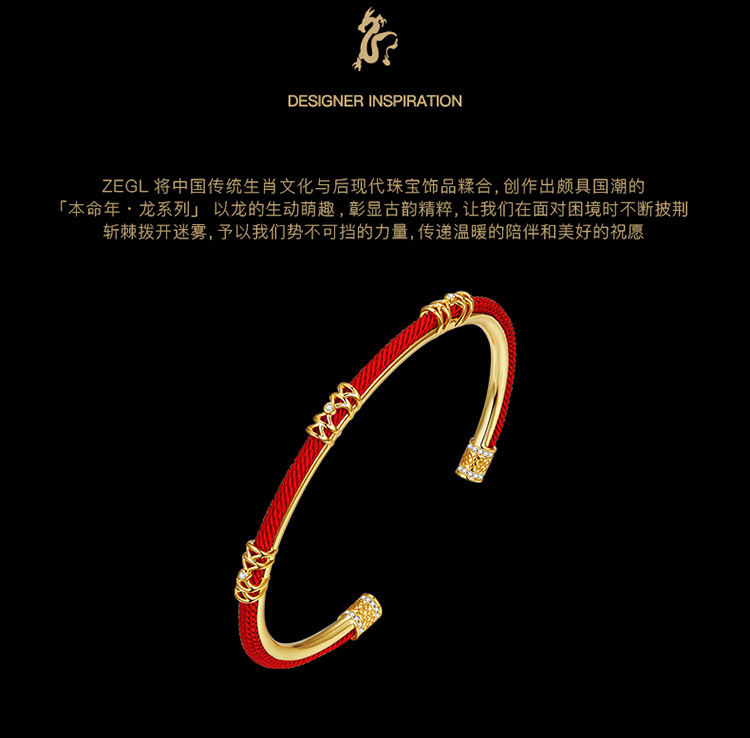 ZEGL设计师本命年龙系列红绳开口手镯女生2024年新款红色手饰镯子