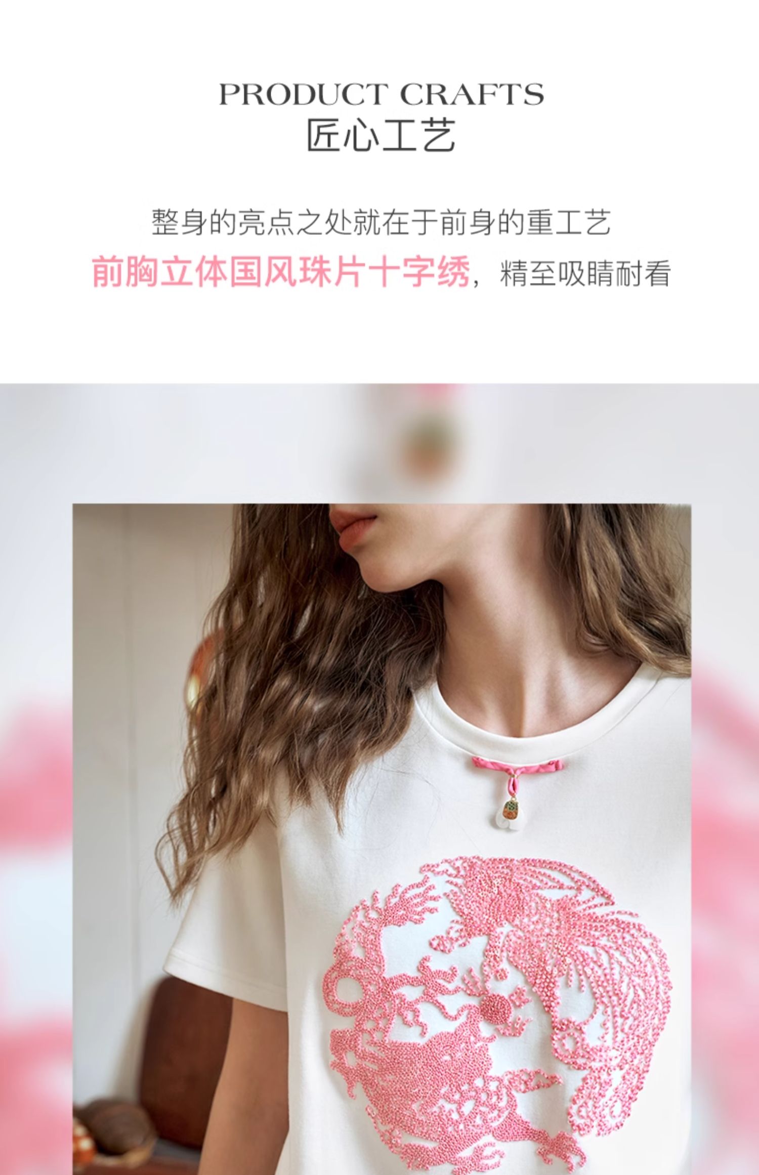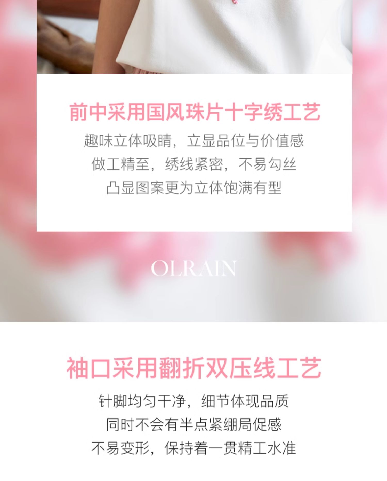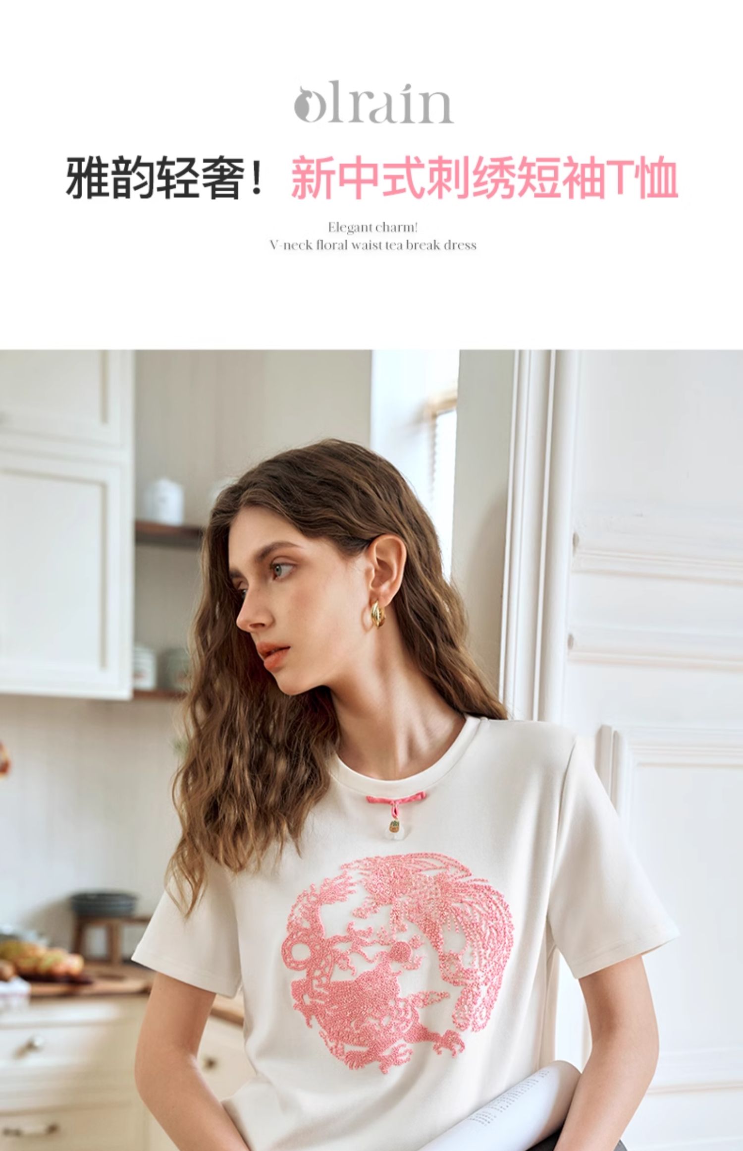 OLrain欧芮儿新中式短袖T恤女夏季2024年新款高级感别致刺绣上衣