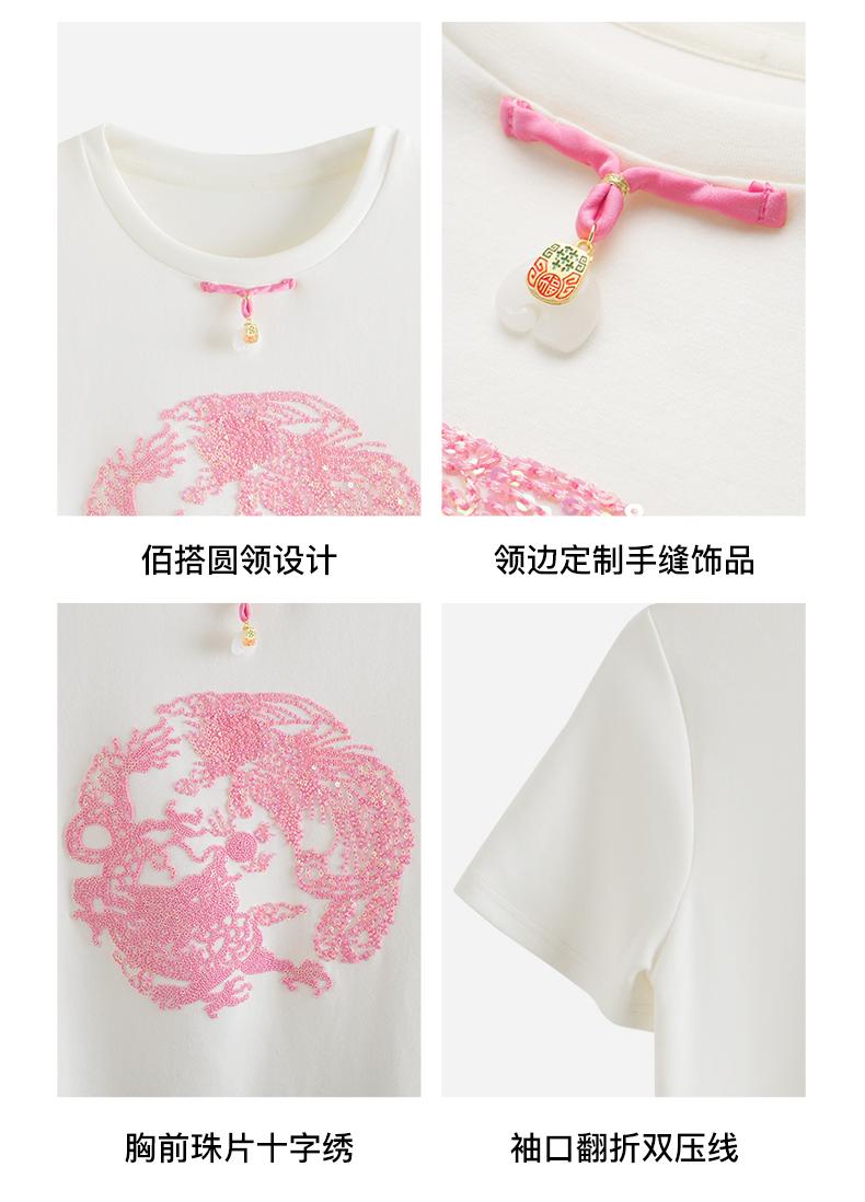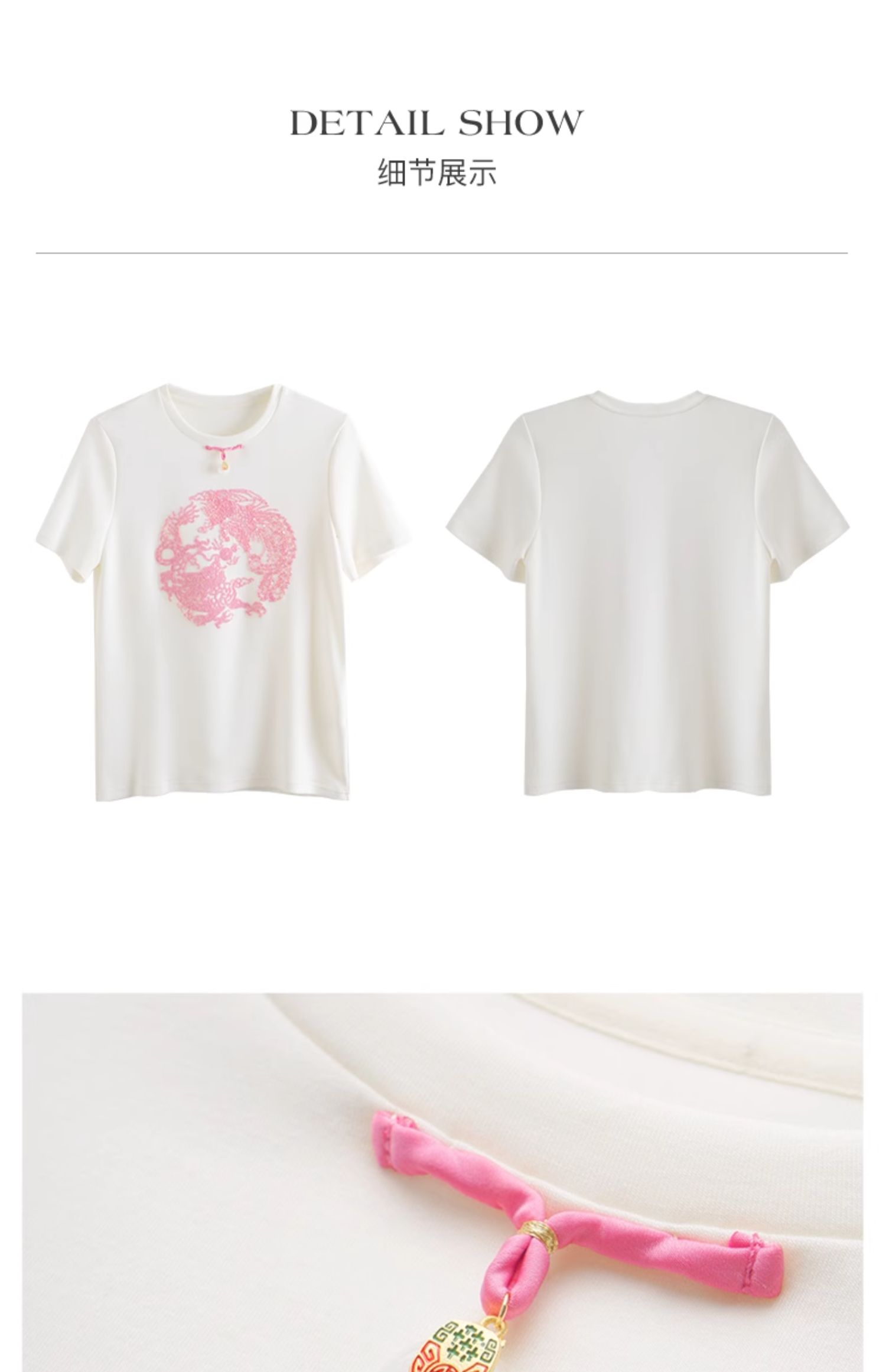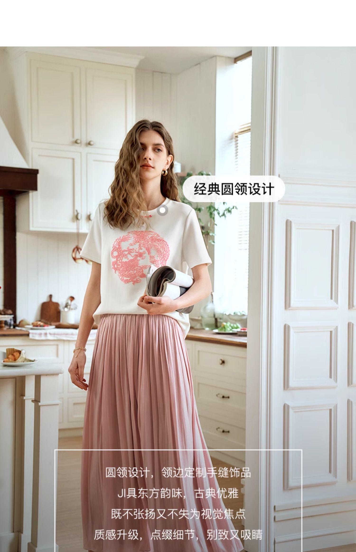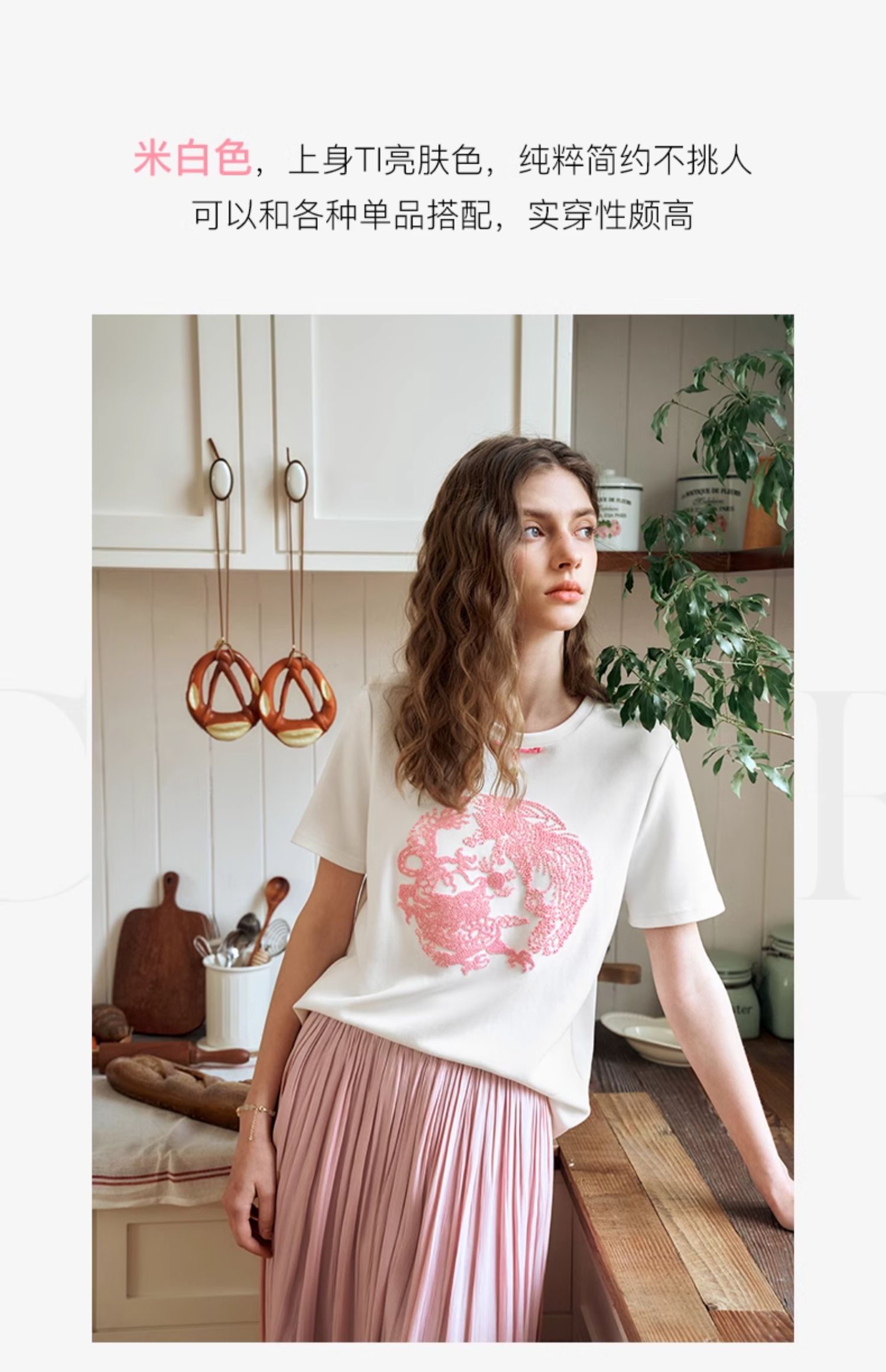 OLrain欧芮儿新中式短袖T恤女夏季2024年新款高级感别致刺绣上衣