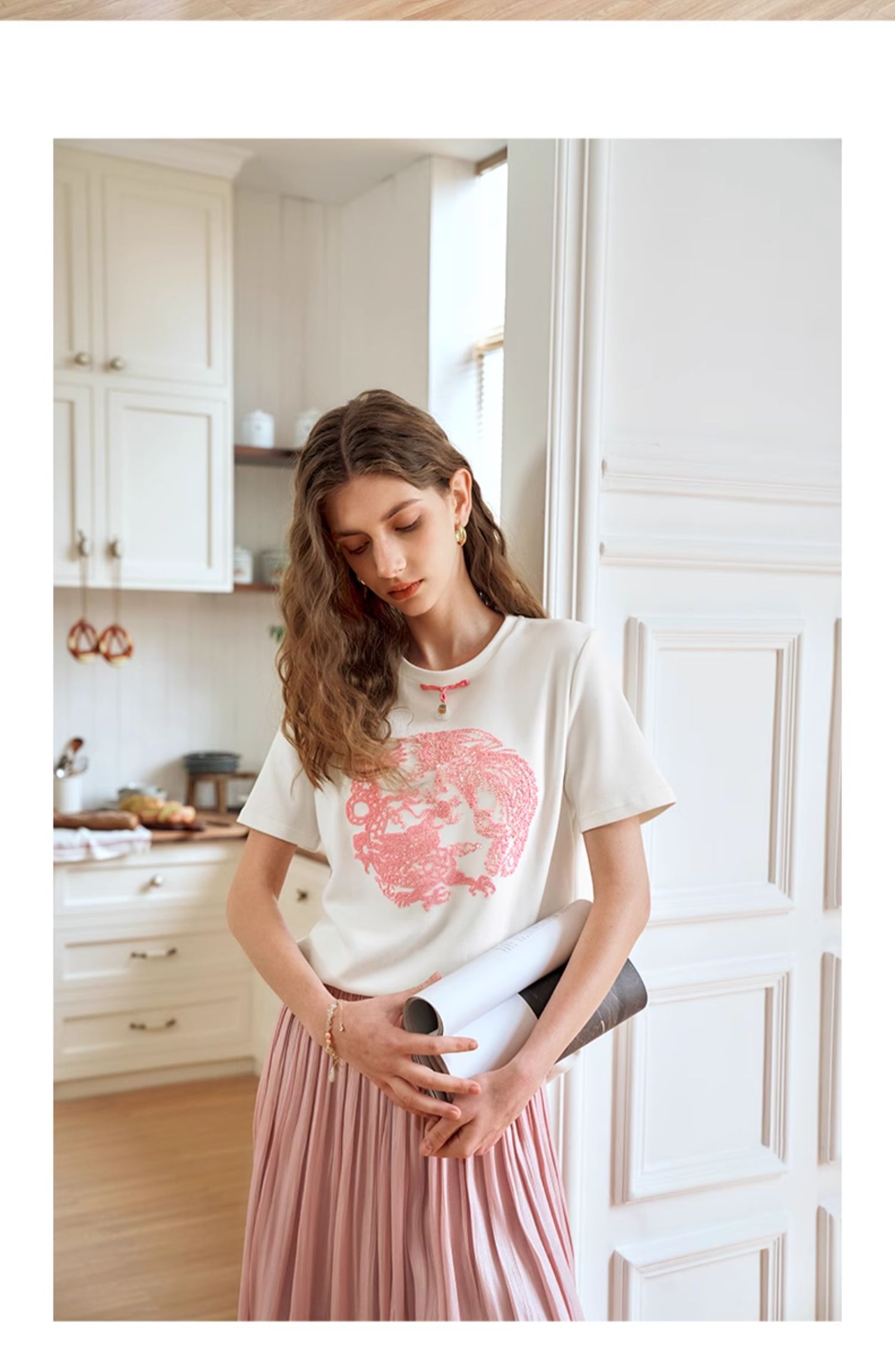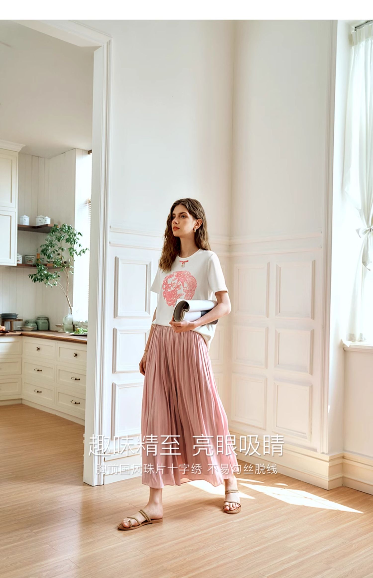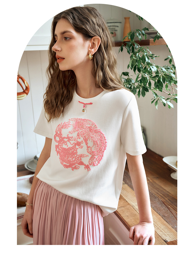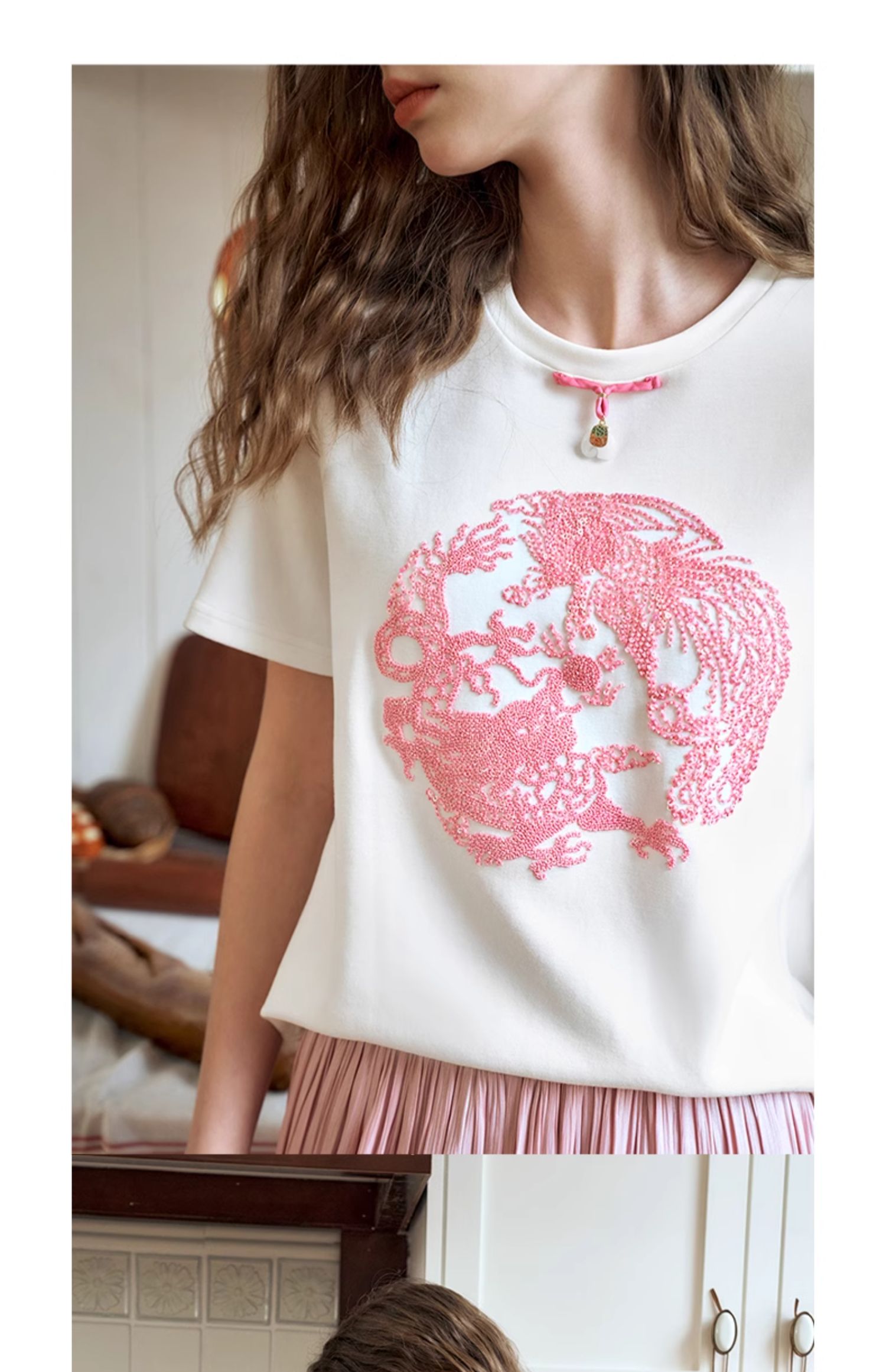OLrain欧芮儿新中式短袖T恤女夏季2024年新款高级感别致刺绣上衣