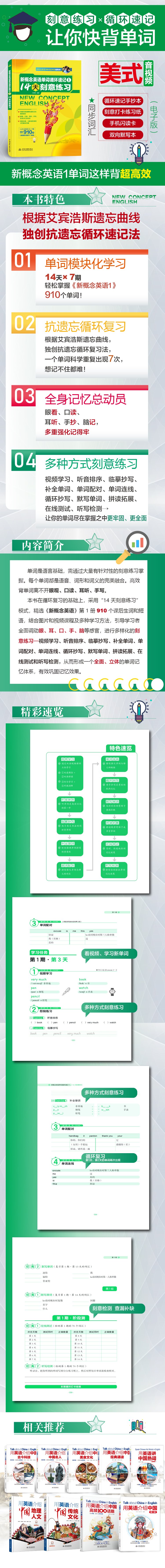 新概念英语单词循环速记1::14天刻意练习 (按天计划 据艾宾浩斯遗忘曲线编制 全身记忆总动员 音频视频超多赠品)