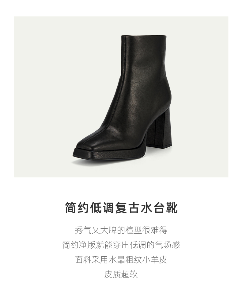 westory秋季新品简约低调复古水台靴羊皮气质时尚靴W23DS83311