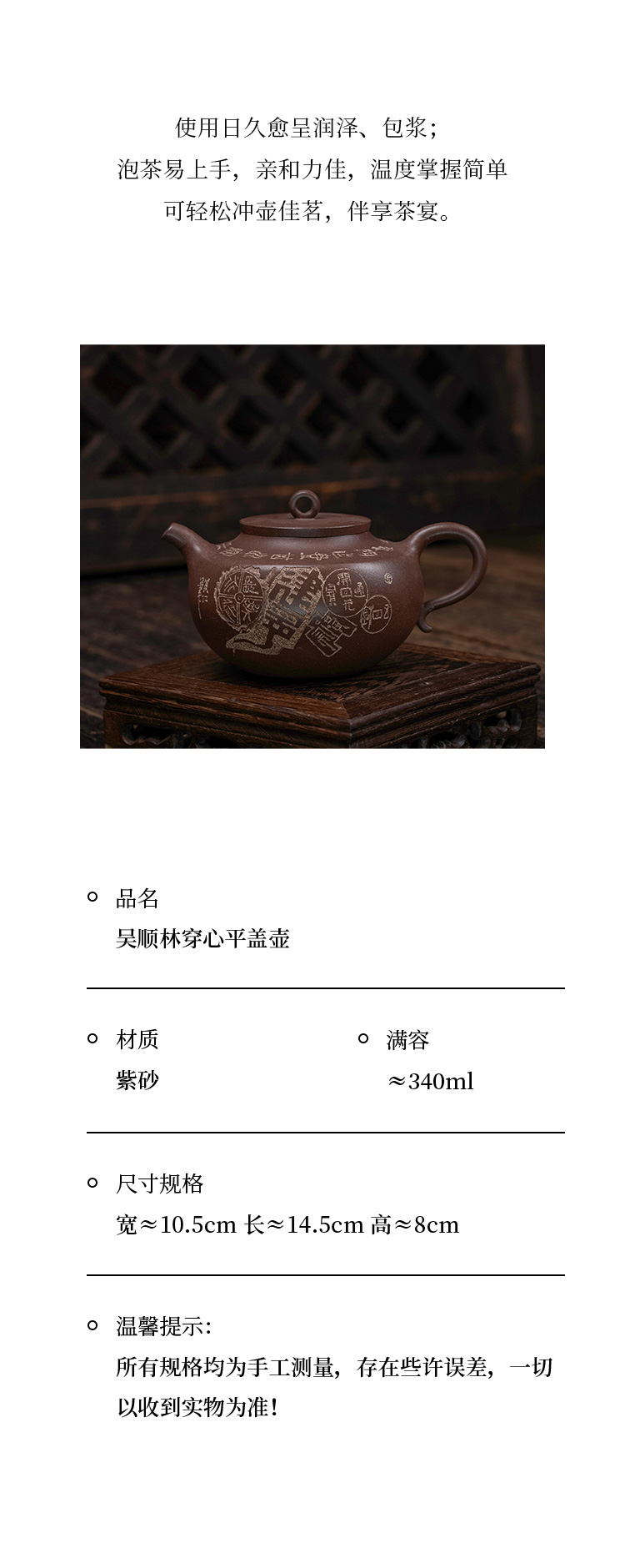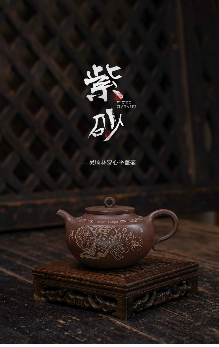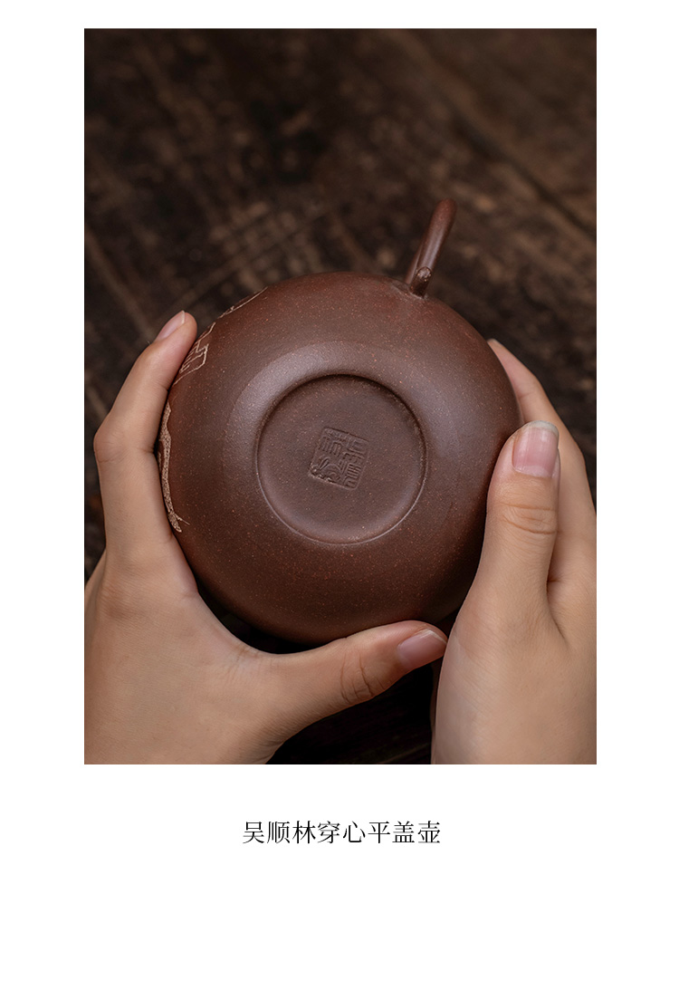 吴顺林 穿心平盖壶 宜兴紫砂原矿茶壶紫砂壶功夫茶泡茶壶茶具仿古