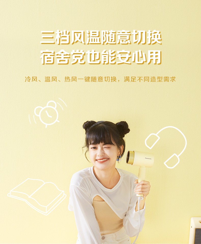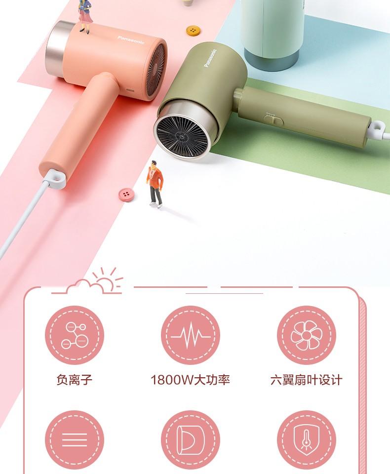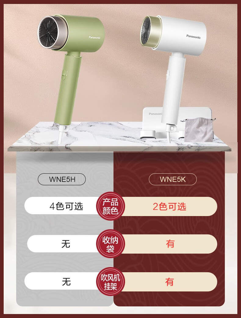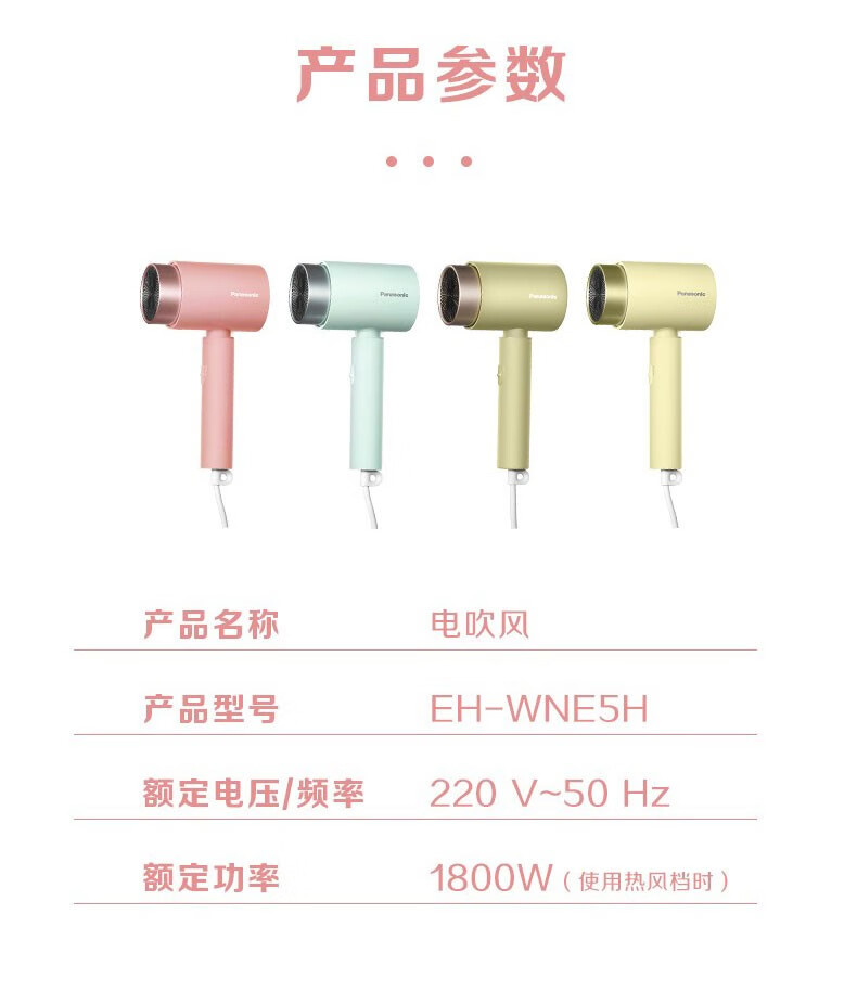 8月内购 松下吹风机家用恒温负离子护发大功率电吹风宿舍学生速干小吹筒WNE5H