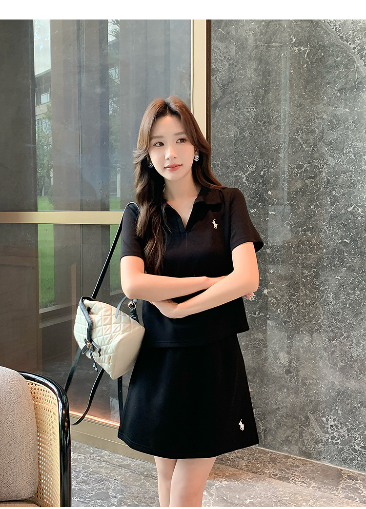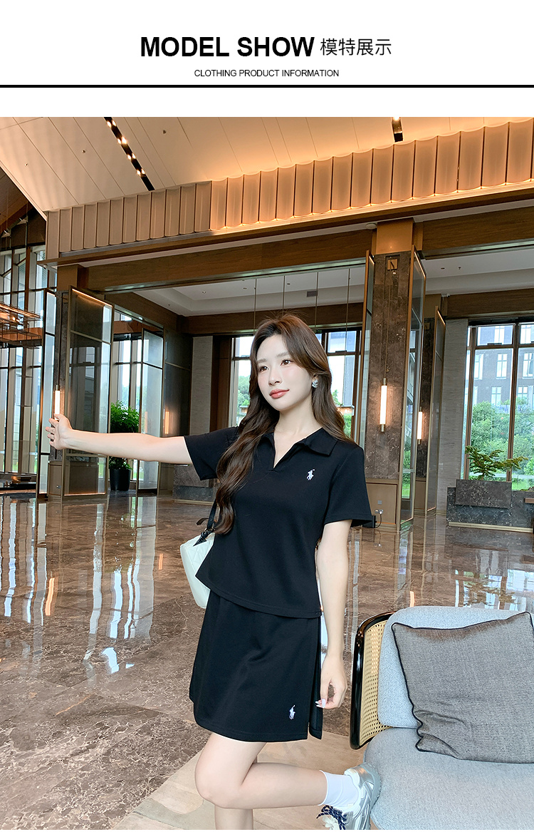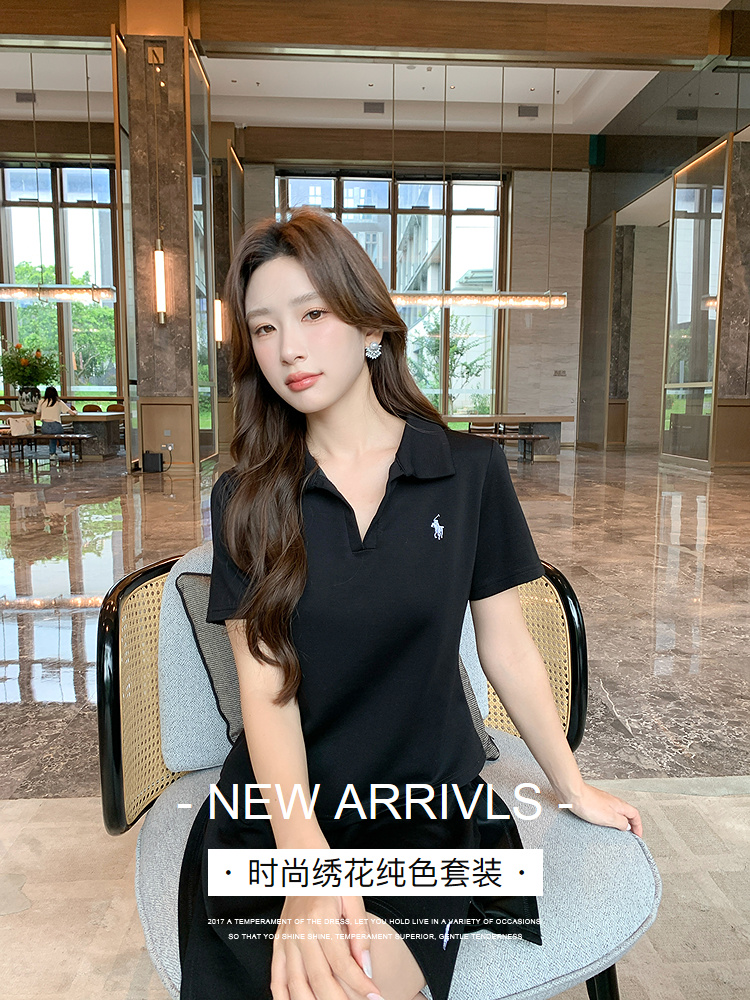 奢姿大码女装2025夏季POLO领气质两件套胖妹妹绣花设计休闲套装9952969842