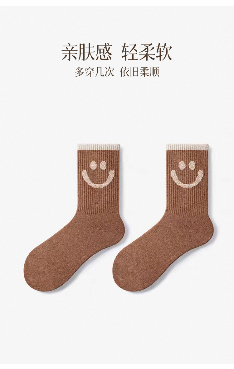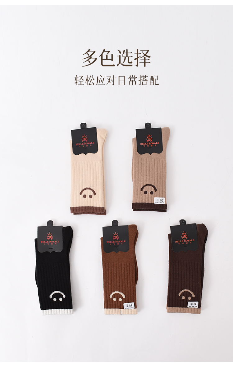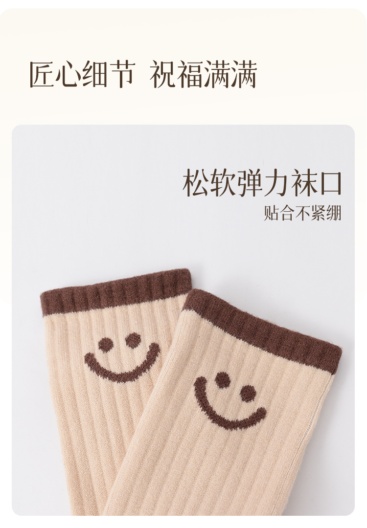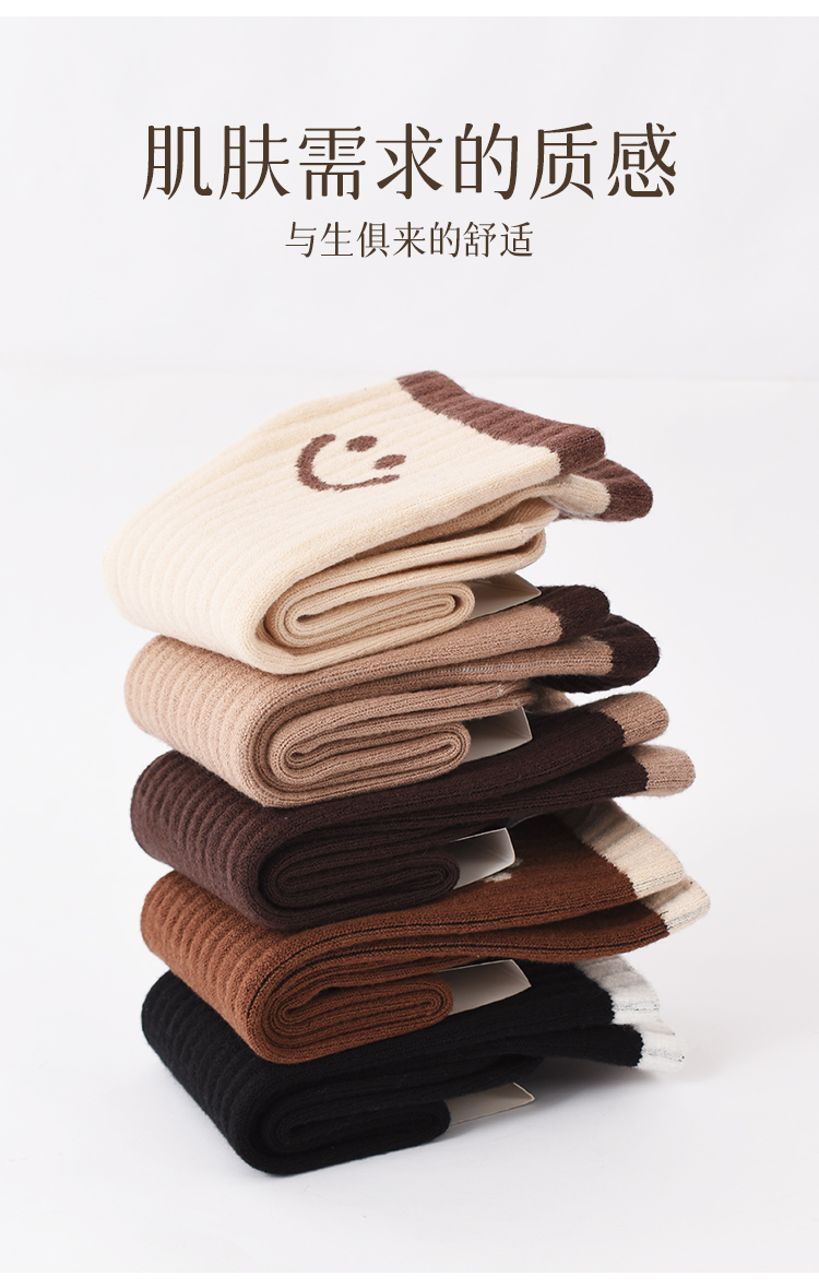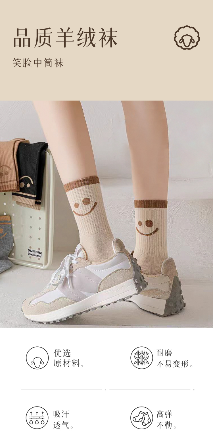 【42元5双,下单拍5】笑脸袜羊绒女秋冬季中筒厚袜子保暖底月子长袜WZM3448