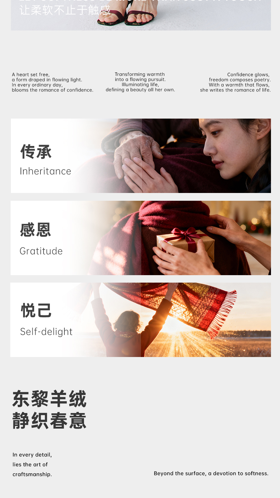 东黎羊绒是赤峰东荣集团自主品牌,自有牧场/羊绒制品全产业链优势,实现了羊绒从“牧场”到“商场”的华丽转变。