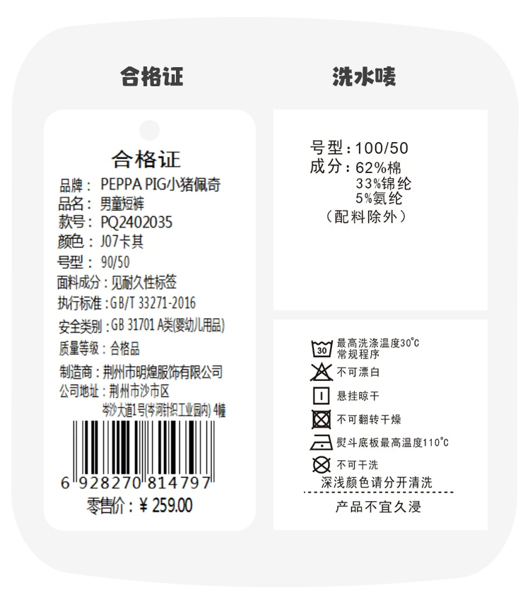 【100-130】【小猪佩奇】男女童夏季休闲短裤