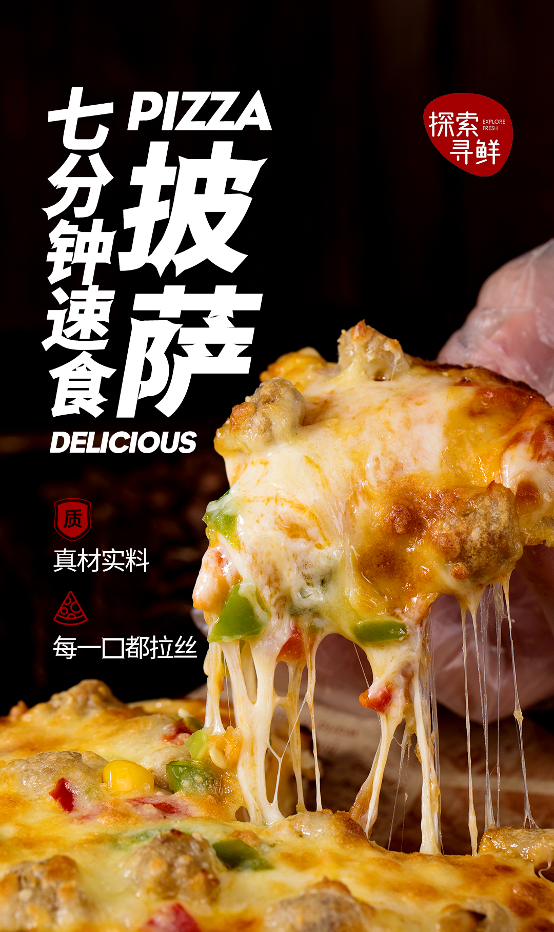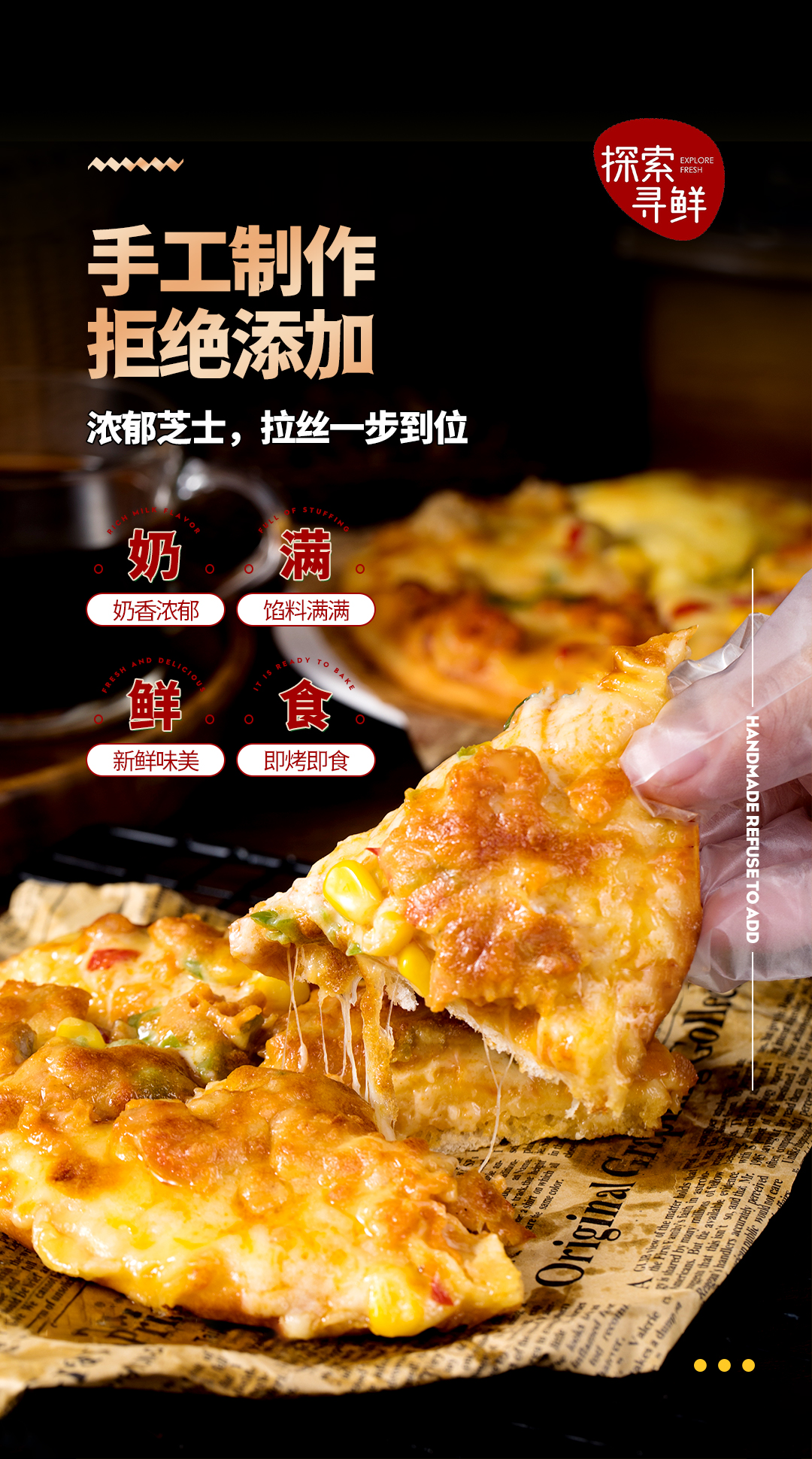 探索寻鲜意式总汇披萨可以轻松拉丝,饼底外层金黄酥脆,奶香浓郁。经过改良传统意式披萨的饼底,不会发干发硬且韧性十足,凉了也可以轻松咬着吃。