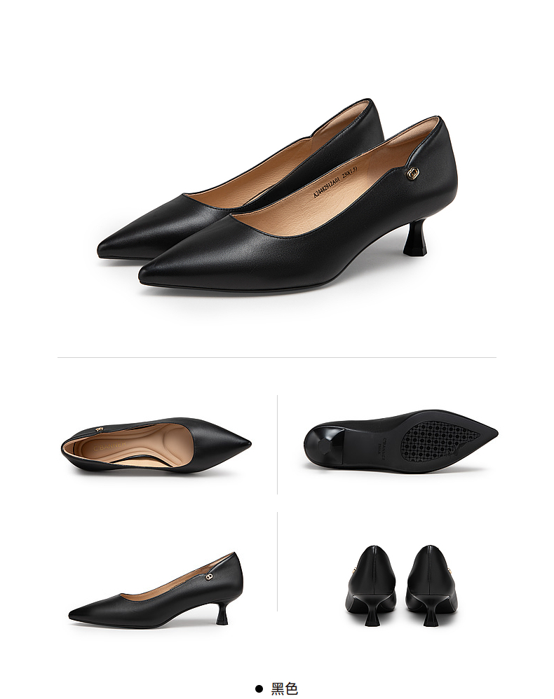 【静音系列】千百度小猫跟高跟鞋女秋季裸色浅口尖头单鞋A24482912
