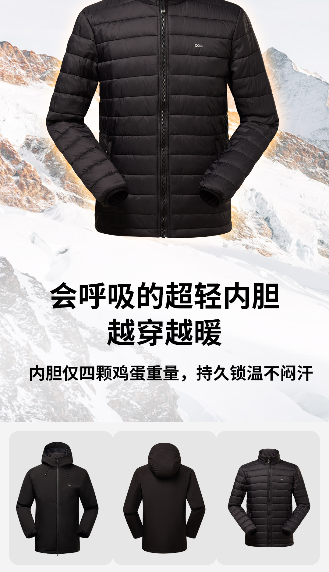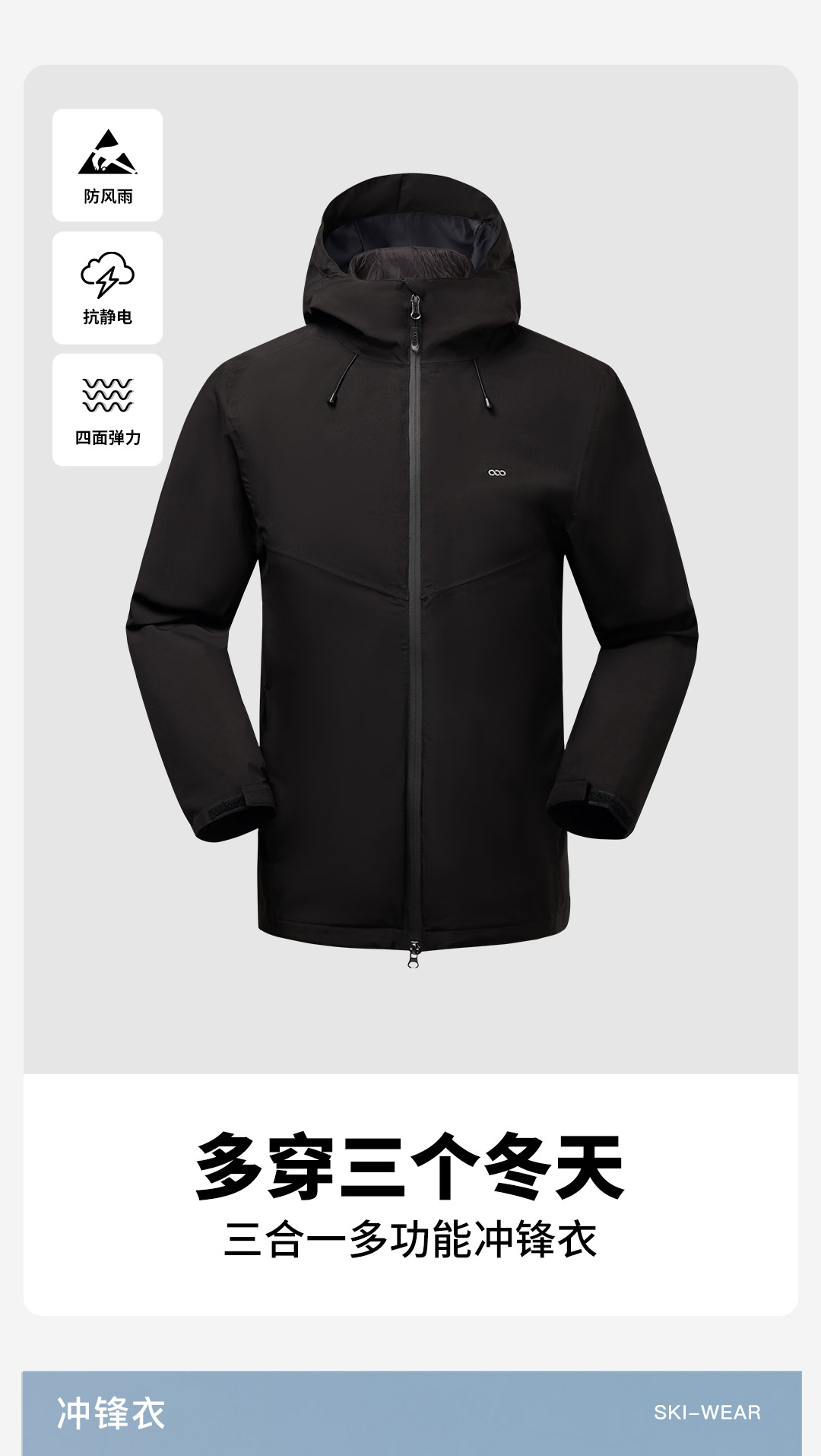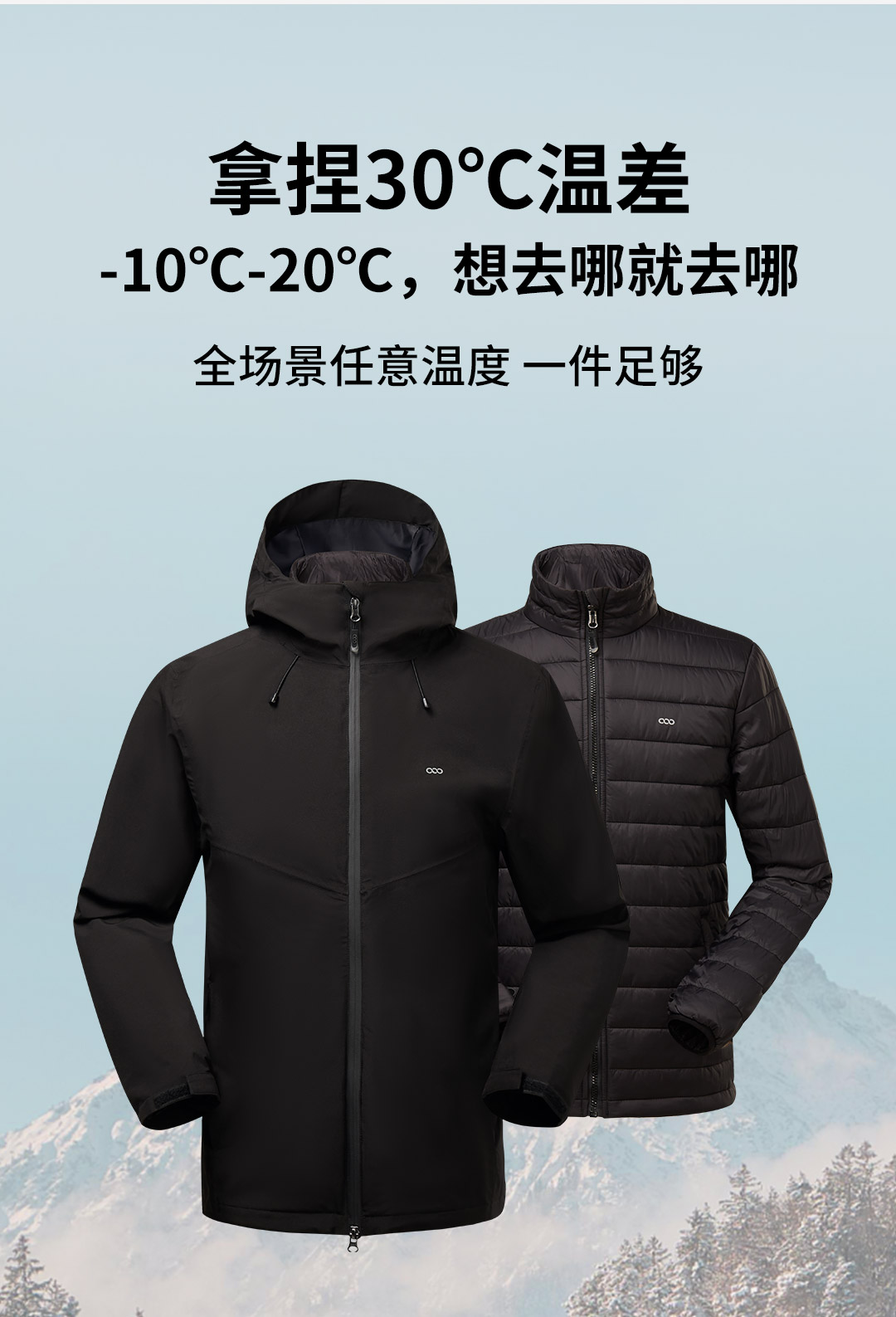 33000ft三合一户外冲锋衣男冬季防污防风外套保暖防寒内胆